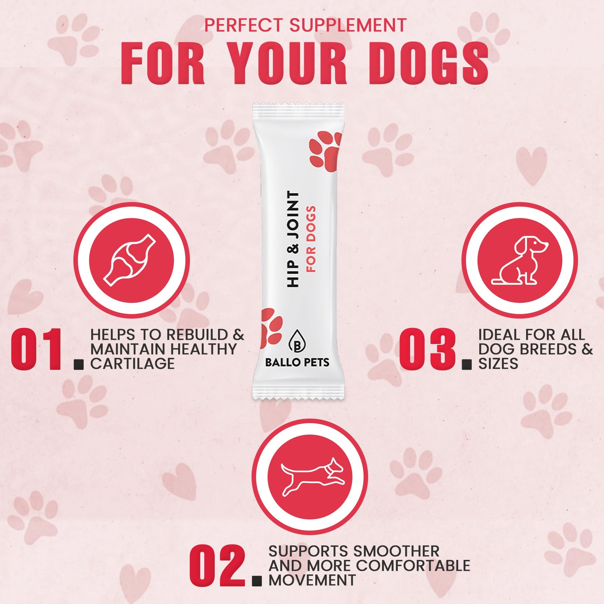 Ballo Pets Hip & Joint for Dogs - Joint Supplement for Dogs - Pain and Inflammation Relief with Glucosamine, Chondroitin, MSM, Turmeric, Vitamin C - 30 Powder Sticks to go, Red