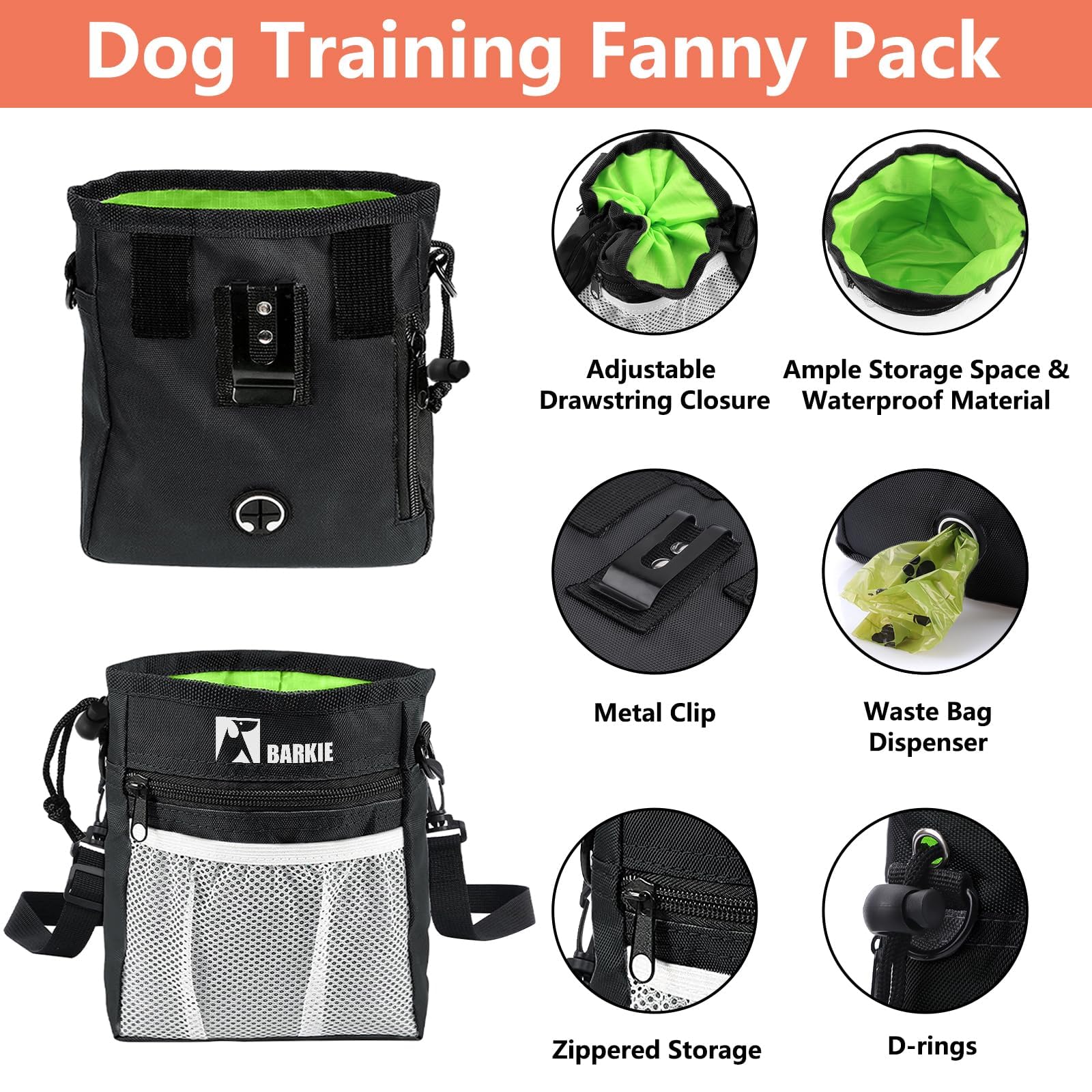 BARKIE Dog Training Kit - Treat Pouch, Pet Training Fanny Pack, 2 Puppy Training Clickers, Ultrasonic Silent Whistle, 2-in-1 Whistle Clicker, Clicker Training Guide Booklet, Dog Poop Bag (Black)