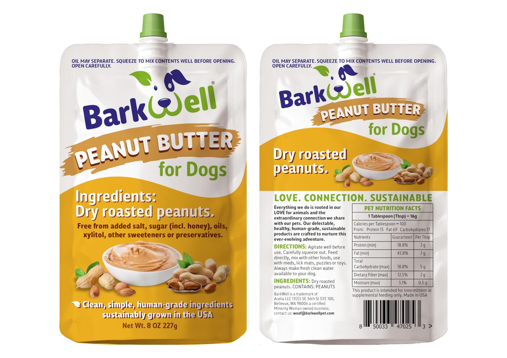 BarkWell Peanut Butter Squeeze - 8oz Pouch All-Natural Dog Peanut Butter, Sourced and Made in The USA Grain Free Dog Treat 100% Natural, Lick mat Topper, Puzzle Toy Fill