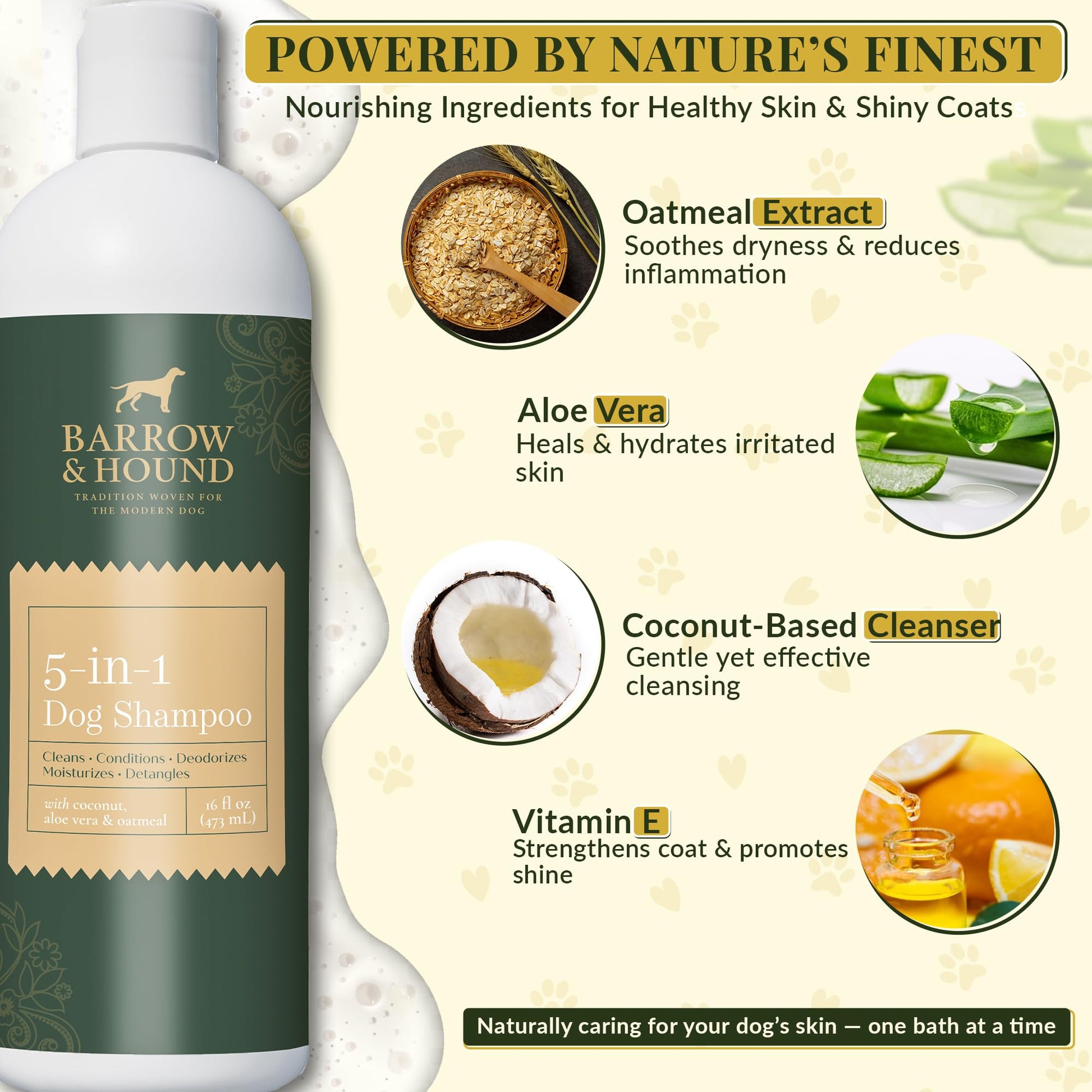 Barrow & Hound 5-in-1 Dog Shampoo & Conditioner – Natural, Tear-Free, Hypoallergenic Formula for Itchy & Smelly Dogs | Oatmeal, Aloe & Coconut | Safe for Puppies & All Breeds | Made in USA