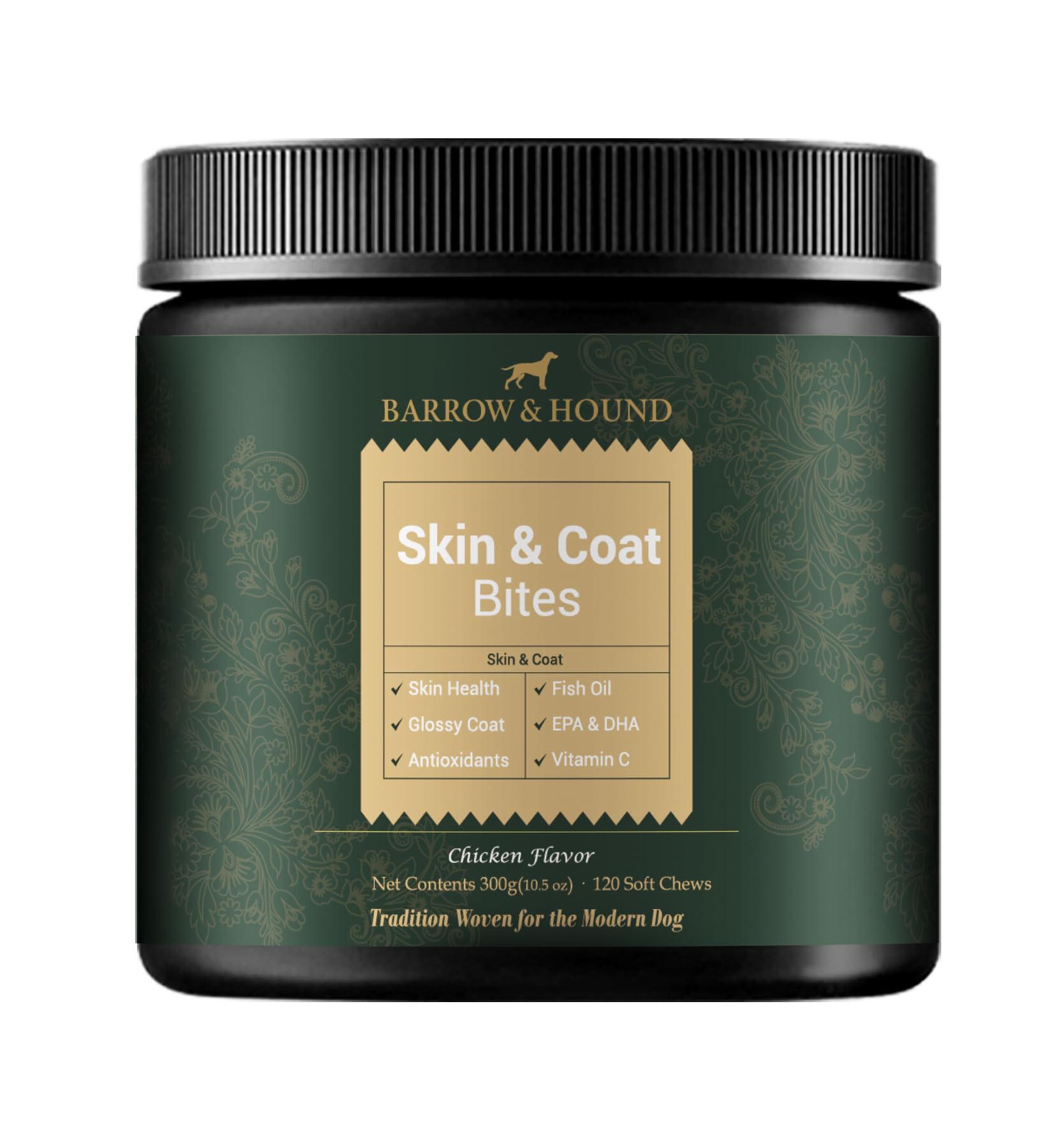 Barrow & Hound - Skin & Coat Support Chews for Dogs – 120 Soft Chews with Fish Oil, Omega 3, Biotin & Zinc – Shiny Coat & Healthy Skin – Chicken Flavor