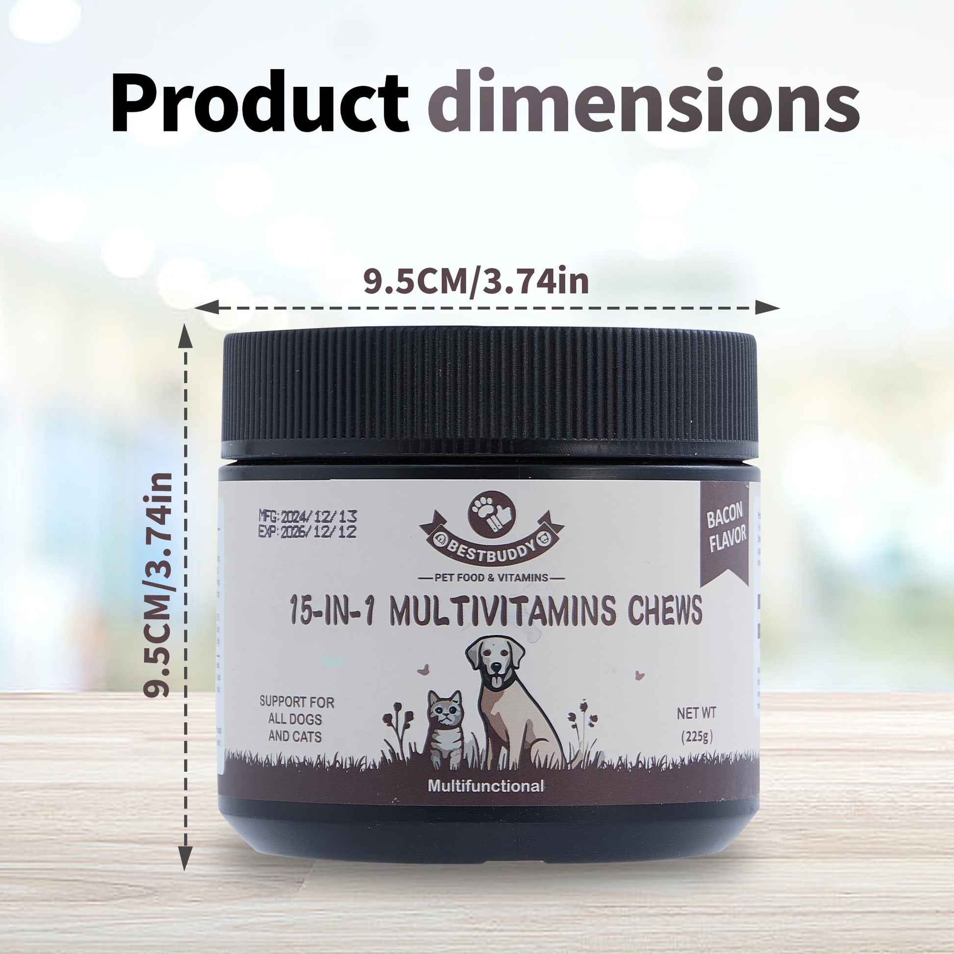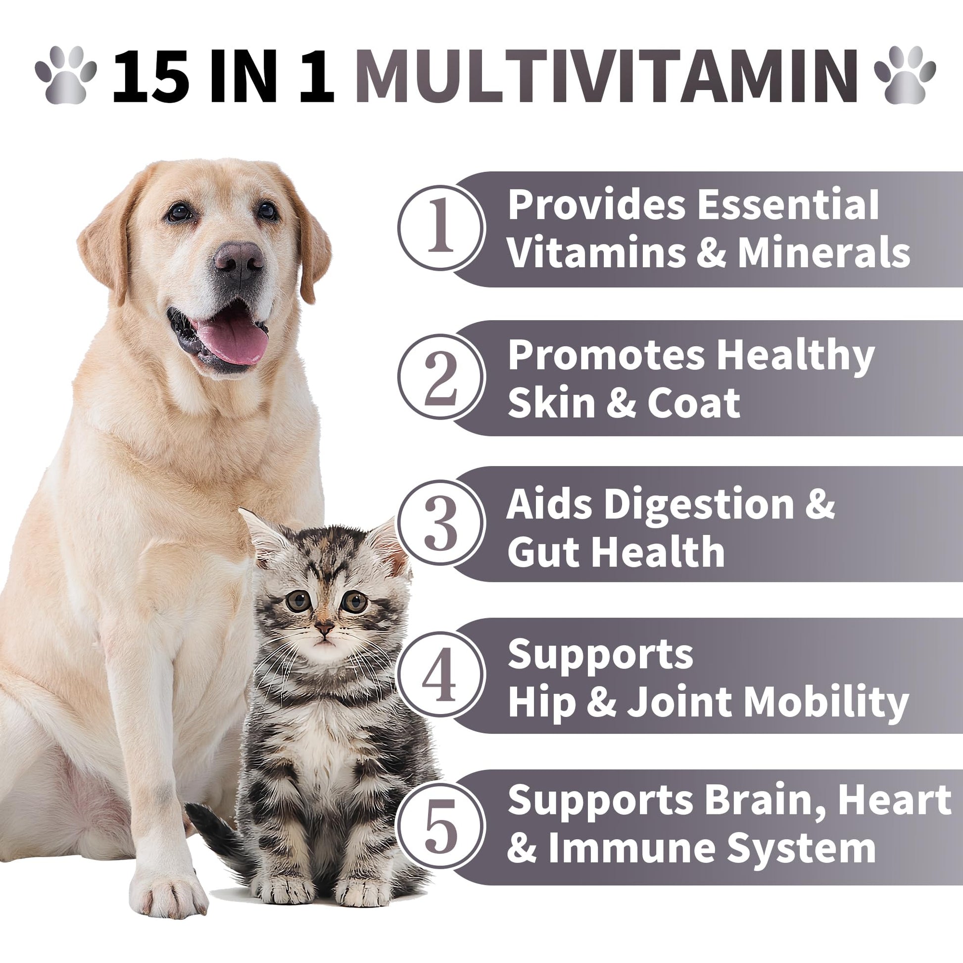 - 15-in-1 Multivitamin for Complete Pet Health – Supports immune system, joints, skin, coat, digestion, and more in one easy-to-use supplement.