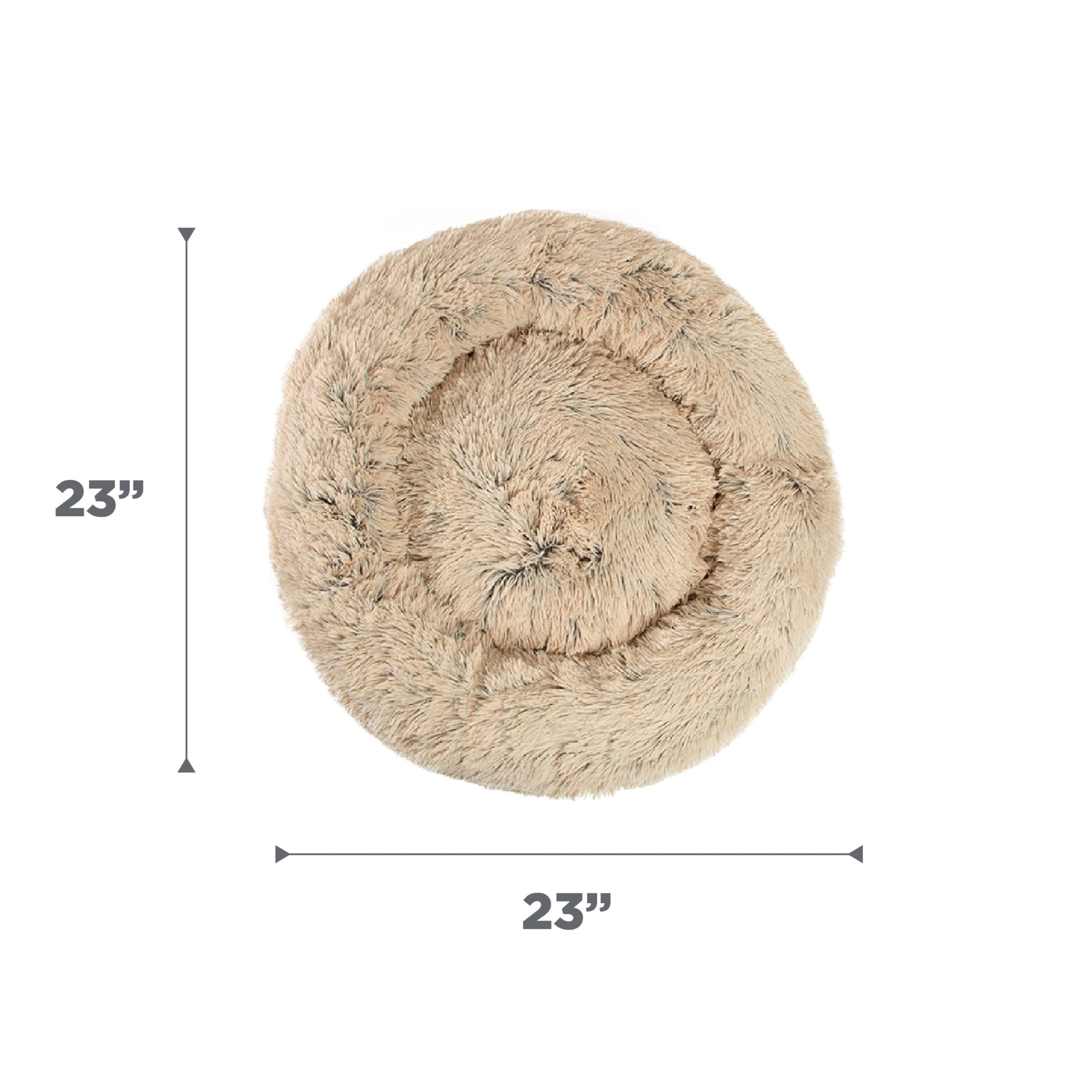 Details: Provide your pet ultimate comfort and relaxation with the Best Friends by Sheri Original Calming Donut Dog and Cat Bed. Crafted from luxuriously soft Shag faux fur, this donut-shaped donut cuddler creates the perfect cozy space for pets who enjoy curling up, cuddling, and burrowing. Specifically designed to ease anxiety and stress, its plush texture mimics a mother's comforting fur coat, promoting deeper, rejuvenating sleep. The generous high-loft polyfill cushioning offers orthopedic support, relieving pressure points and gently supporting joints, muscles, and the neck. Ideal for cats and smaller breeds including Dachshunds, Pomeranians, Shih Tzus, Chihuahuas, and other toy breeds, this calming nest provides the warmth and security they naturally crave. Enhance your home with its cute, stylish, and functional design featuring a dirt-resistant and water-resistant bottom, helping to prevent accidental spills from reaching your floors. Maintaining this plush haven is simple and convenient—completely machine washable for easy care, ensuring a fresh and inviting sleep space for your furry friend at all times. Whether your pet enjoys daytime naps or deep nighttime sleep, this donut cuddler that helps with stress relief will quickly become their favorite cozy spot. Spoil your beloved companion with a calming, supportive sanctuary designed to improve their overall wellbeing, health, and happiness, making your home an even happier place. Ideal for puppies and senior canines, xs and small dogs (Yorkies, Dachshunds), medium dogs (Frenchies, Bulldogs, Beagles), medium, large, and even XL or giant dogs (Great Danes, Saint Bernards), as well as indoor cats and kittens of all breeds, the Original Calming Donut Dog and Cat Bed comes in two faux fur styles – Lux and Shag – to provide comfort for every breed type. Pets with long fur will find comfort in the Lux design – shorter pile, luxuriously soft, and great for warmer seasons – while pets with short fur will appreciate the self-warming nature of the Shag long faux fur option that creates a cozy haven during the winter season and in cooler climates. Both styles feature a water and dirt-resistant bottom that helps prevent messes from reaching your floors. When accidents happen, or the bed needs a quick refresh, cleaning is a breeze – machine wash and follow the instructions on the label to ensure proper care. Small beds (18 in and 23 in) are entirely machine washable, while medium, large, and extra large beds (30 in, 36 in, 45 in, and 54 in) have a removable cover for machine washing. Create an elevated home furniture aesthetic with neutral ivory and cream colors, pastel pinks, blues, sage green, and purples, or even dark browns, muted beige, and more – Best Friends by Sheri provides the coziest deep dish cuddle cup beds, enclosed hooded huts, memory foam orthopedic beds, and numerous donut bed options to suit every pet's need.