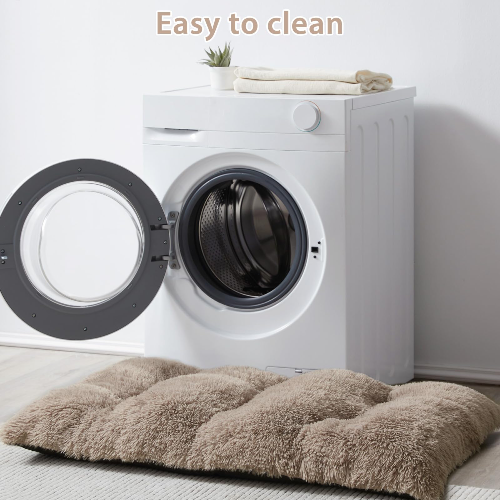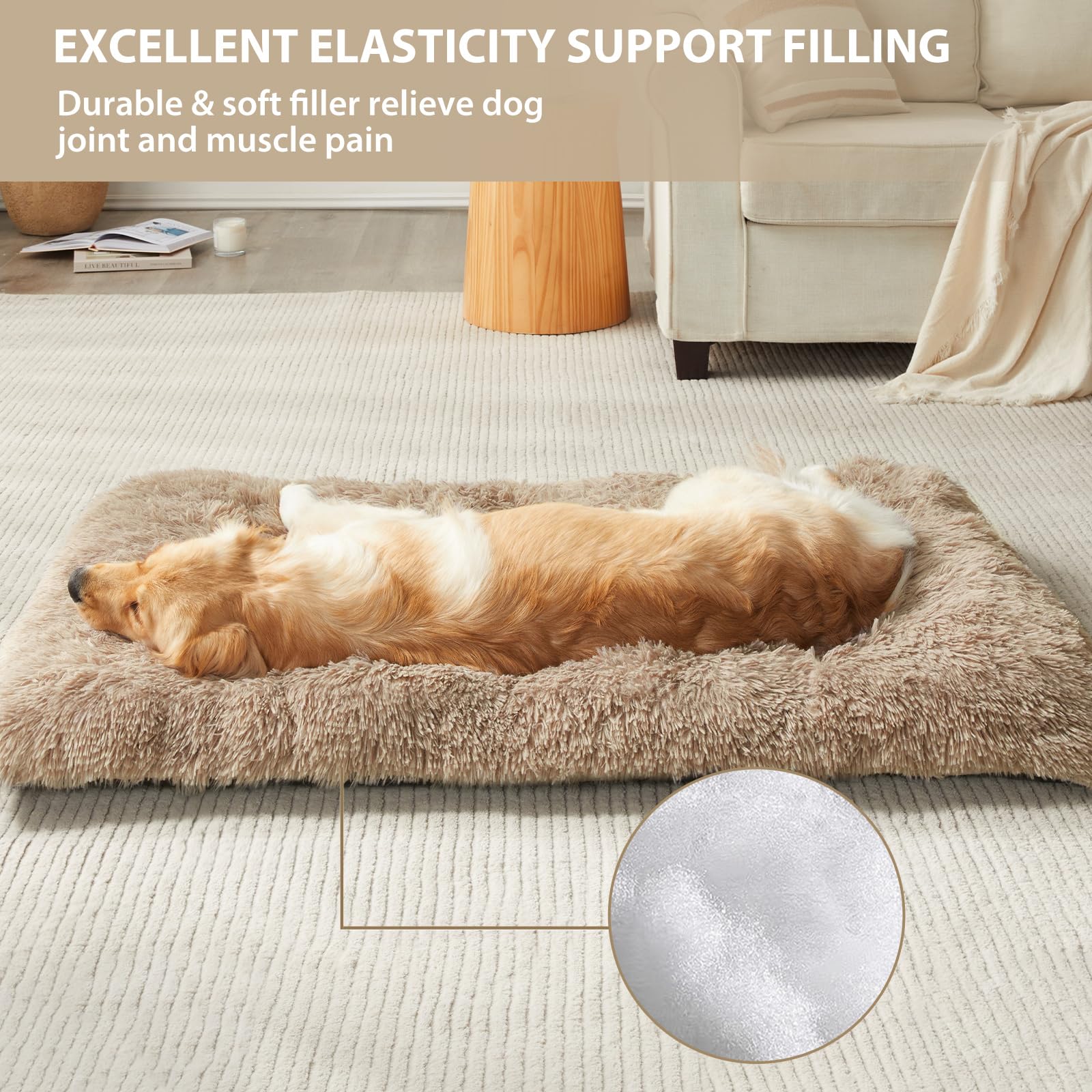 BFPETHOME Dog Beds for Large Dogs, Plush Dog Crate Bed Fluffy Cozy Kennel Pad for Sleeping &Ease Anxiety, Washable Pet Mats with Anti-Slip Bottom for Large Dogs, Brown