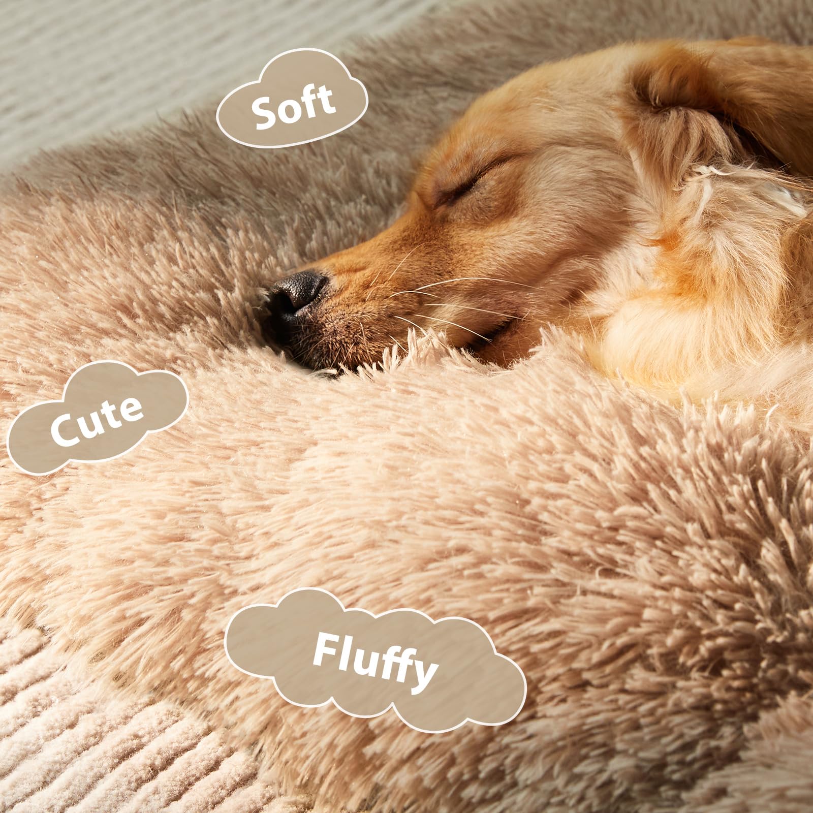 Ultra Soft Fluffy Plush Surface: adopt fluffy and smooth faux fur plush material, soft,cozy and not easy to shedding.The calming dog bed to ensure your dog surrounded by love & warmth, help them anti anxiety and sleep well.