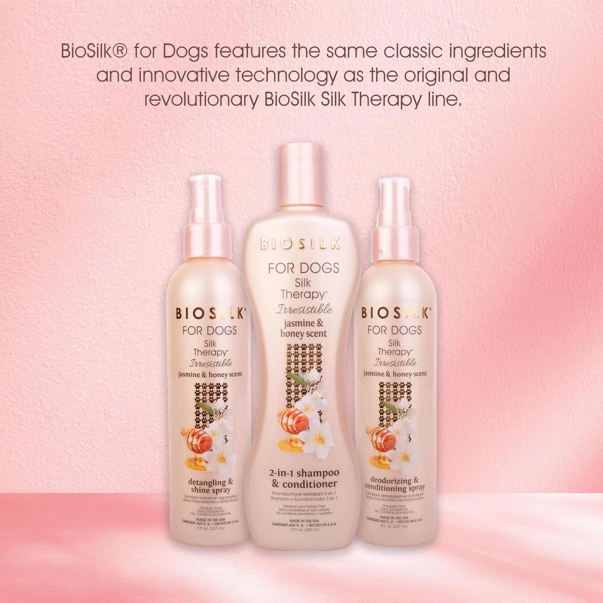 BioSilk for Dogs Silk Therapy Irresistible Detangling and Shine Spray, Scented, Jasmine and Honey Scent, Paraben Free, Made in The USA, 8 FL Ounces