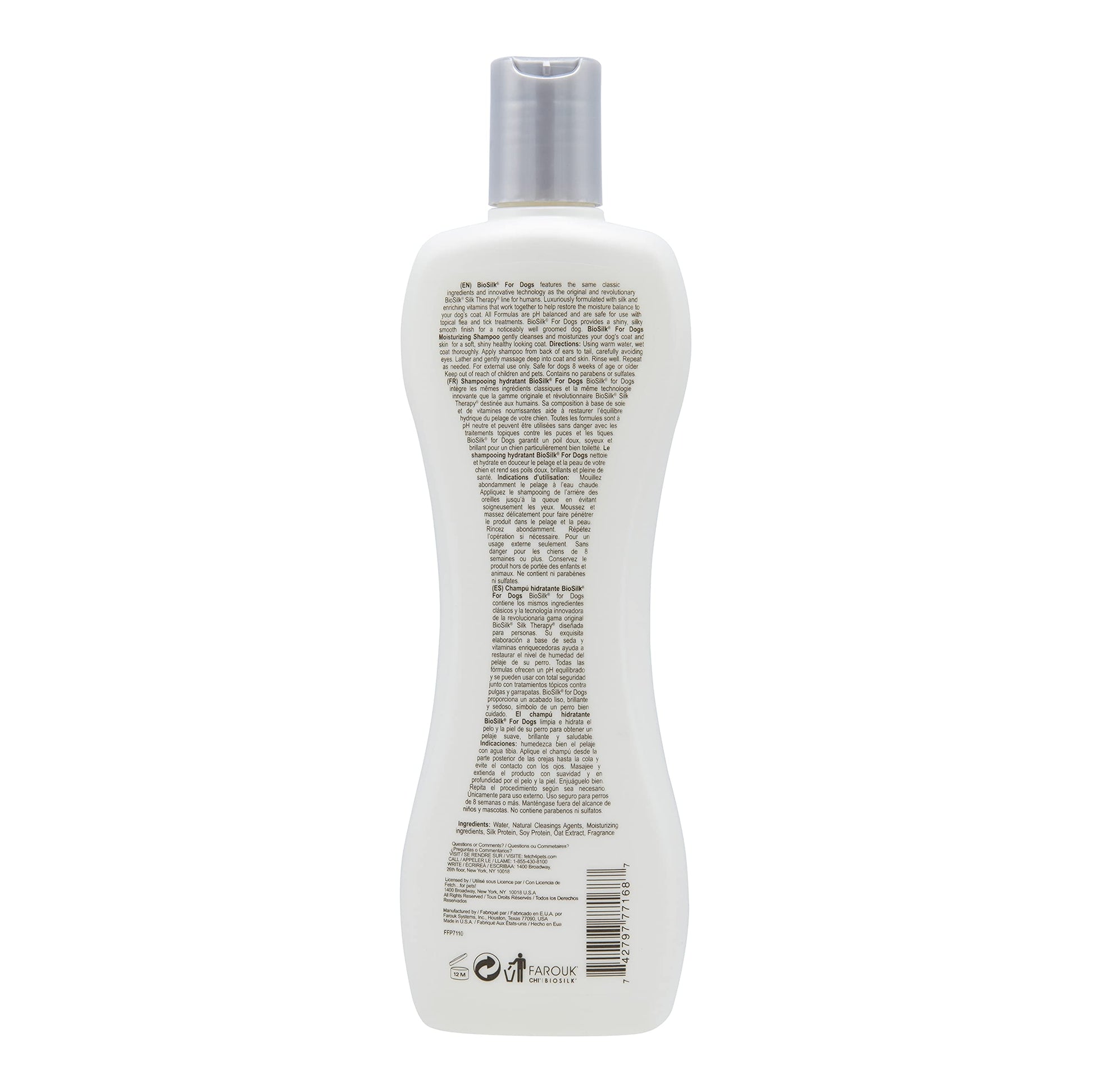 Details: Biosilk Moisturizing Shampoo gently cleanses and locks in moisture for a soft, shiny and healthy looking coat. Ph balanced for pets. Safe for use with topical flea and tick treatments. Free from sulfates and parabens. BioSilk Silk Therapy dog shampoo and conditioner products are important dog grooming supplies and dog bathing supplies. BioSilk for dogs makes a dog shampoo like this moisturizing shampoo for dogs to hydrate and keep your dog's coat moisturized. This dog wash is a pet shampoo that could be seen as a dog dandruff shampoo because it helps moisturize skin and coats. It is a good idea to use a natural dog shampoo or an organic dog shampoo but it is not always necessary. Other types of dog shampoos that BIoSilk makes includes a puppy shampoo, a 2-in-1 dog shampoo and conditioner, a deshedding shampoo for dogs, a whitening dog shampoo, a tearless dog shampoo for puppies, a puppy kit, a dry shampoo for dogs like a dog spray, a waterless shampoo for dogs, the best dog shampoo, a coat defense for dogs, a dog grooming bag and dog kit, dog dandruff treatment, dog dry skin care, biosilk dogs shampoos and conditioners, biosilk dogs conditioner, dog shampoo for smelly dogs, puppy accessories for grooming, pet wash, pet supplies for small dogs, pet supplies for large dogs, dry dog shampoo for large dogs, silk dog shampoo, coconut oil dog shampoo, and so much more. BioSilk dogs also has dog brushes and dog combs to help keep your dog's coat sleek, shiny, and clean. YOUR SATISFACTION IS OUR PRIORITY. For any questions or feedback, please reach out to us directly at Fetch for Pets.