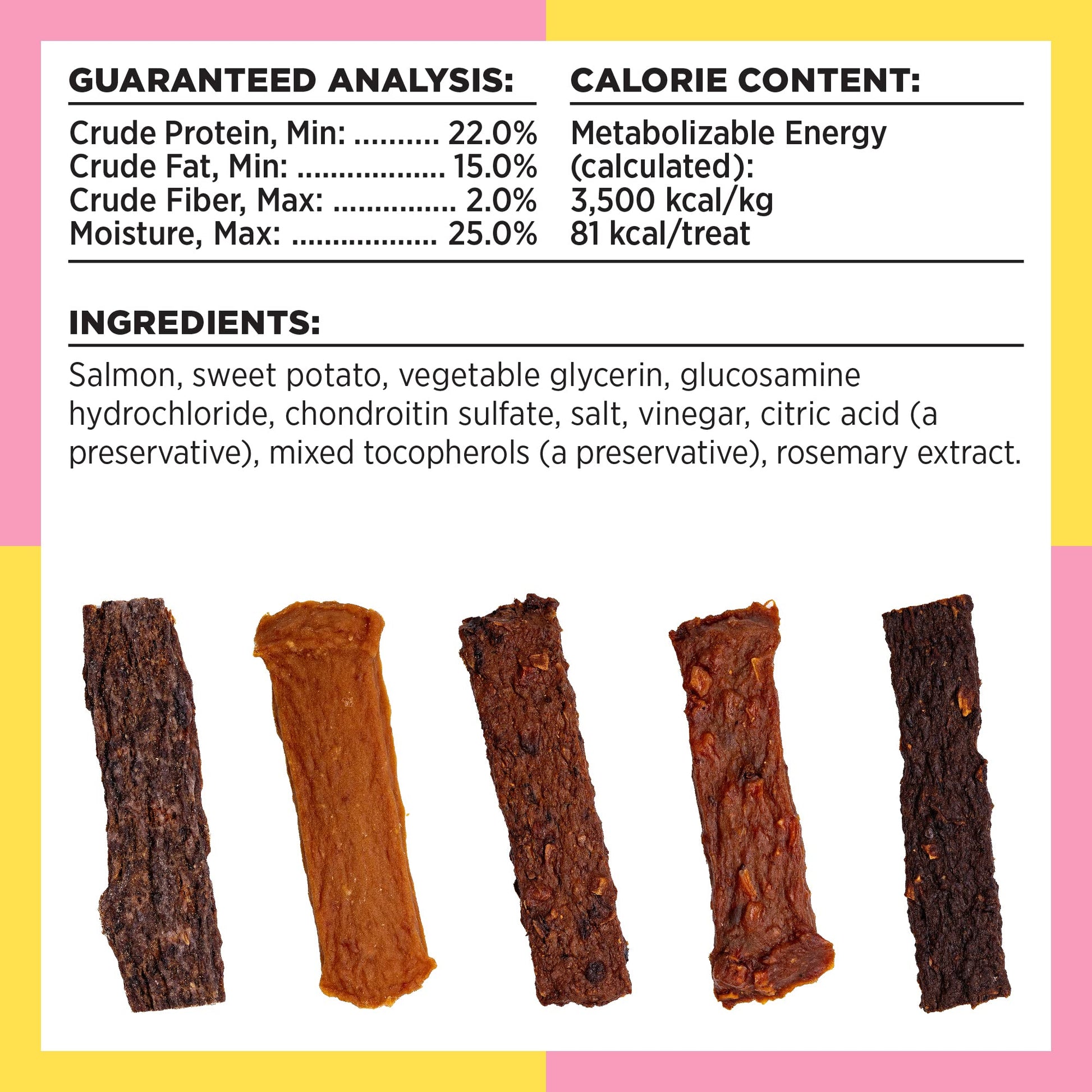 - SUPPORTS HEALTHY HIPS & JOINTS: Made with glucosamine and chondroitin from natural sources; Each dog jerky stick contains approximately 34 mg of glucosamine (2,400 mg/kg) and 17 mg of chondroitin (1,200 mg/kg) to help support and maintain joint function