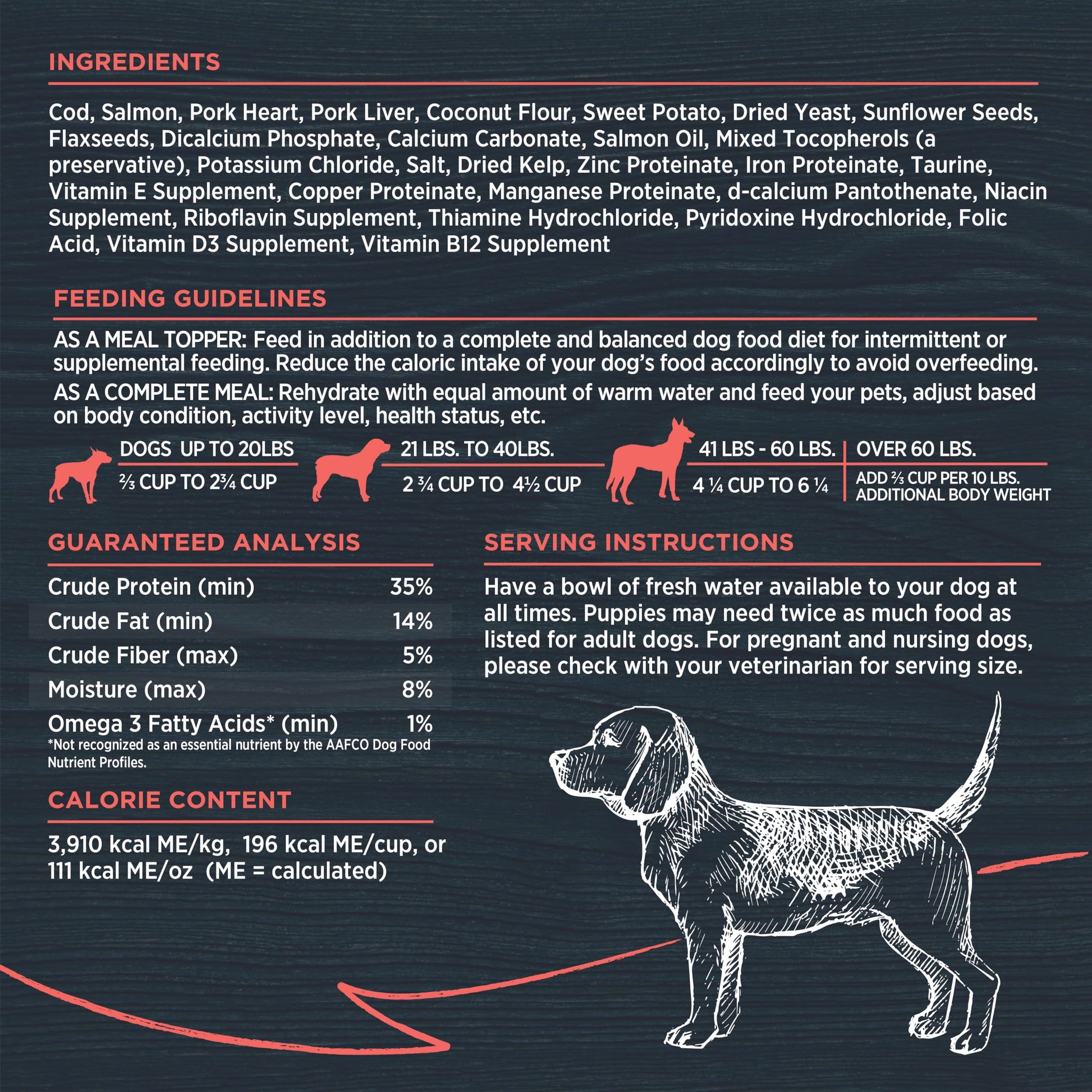 - Contains: one 8 Ounce Bag of Blackwood Dog Food Meal Topper, Cod and Salmon Flavor