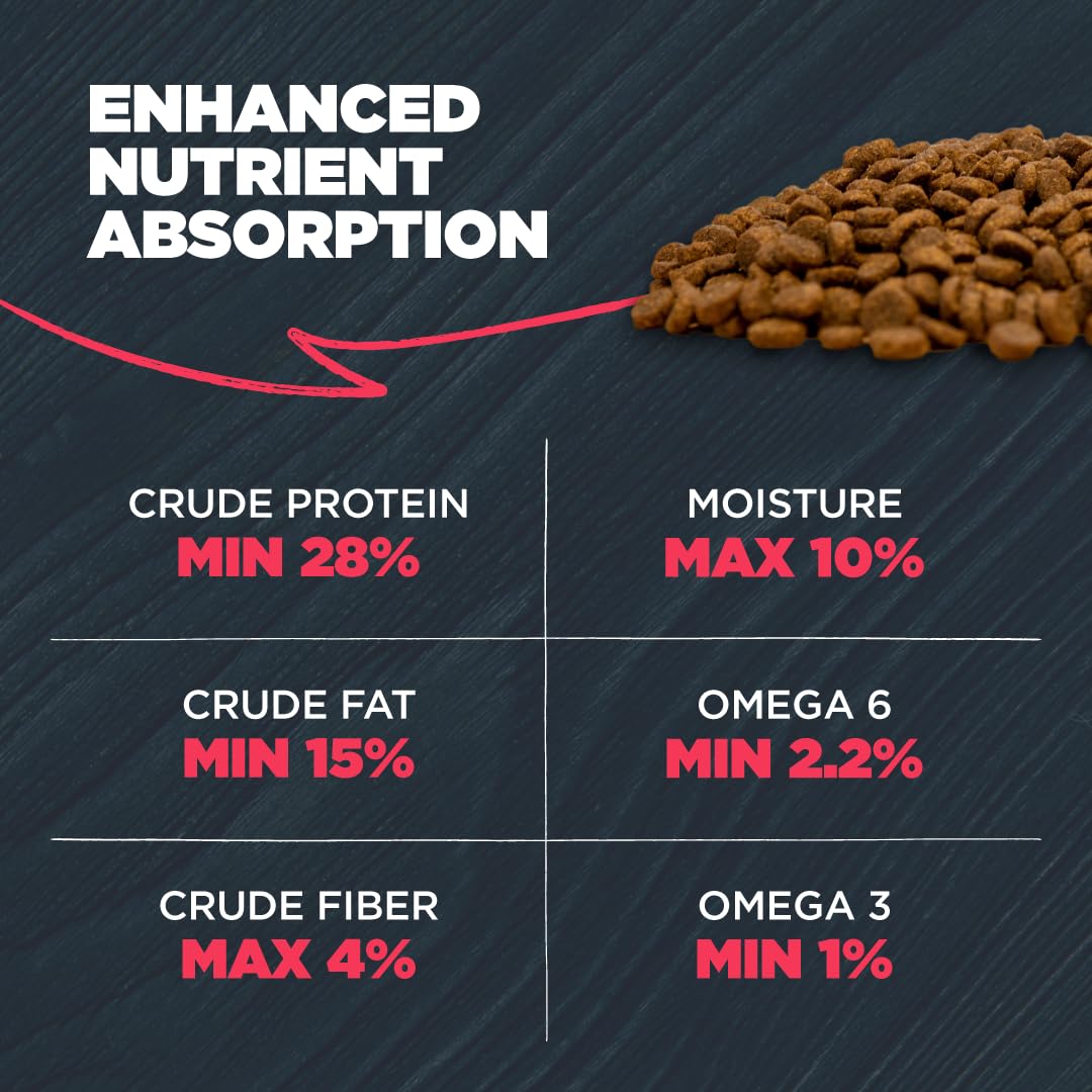 Balanced Diet: Grain free dry dog food tailored for dogs with grain sensitivity, enriched with prebiotics and probiotics for GI health and metabolism, plus vitamins & chelated minerals for optimal nutrient absorption