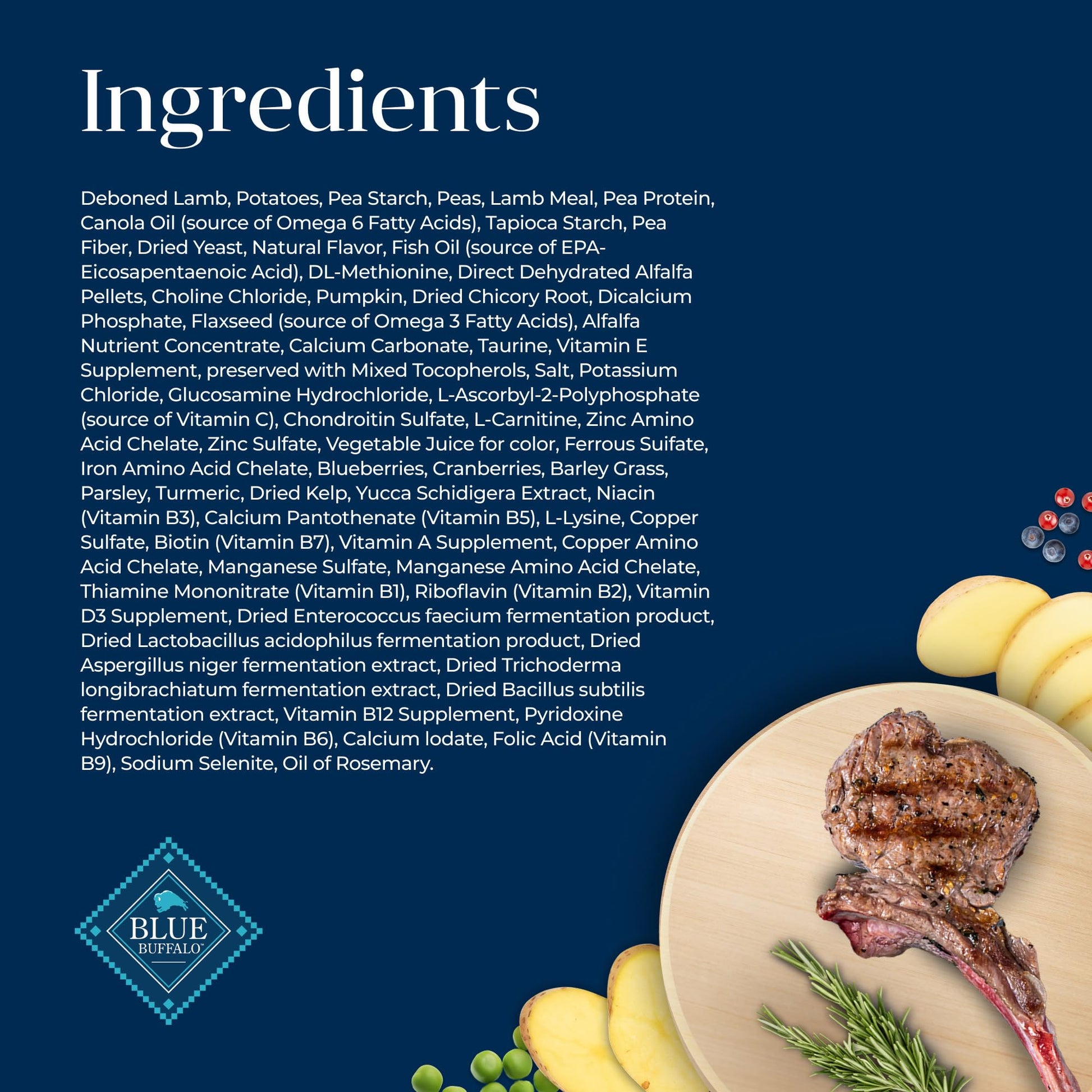 And because it’s BLUE, it’s made with only the finest natural ingredients: Deboned Lamb, a high quality protein not typically used in dog food. Made with potatoes, an easily-digestible carbohydrate source. NO chicken (or poultry) by-product meals and NO corn, wheat, soy, dairy or eggs