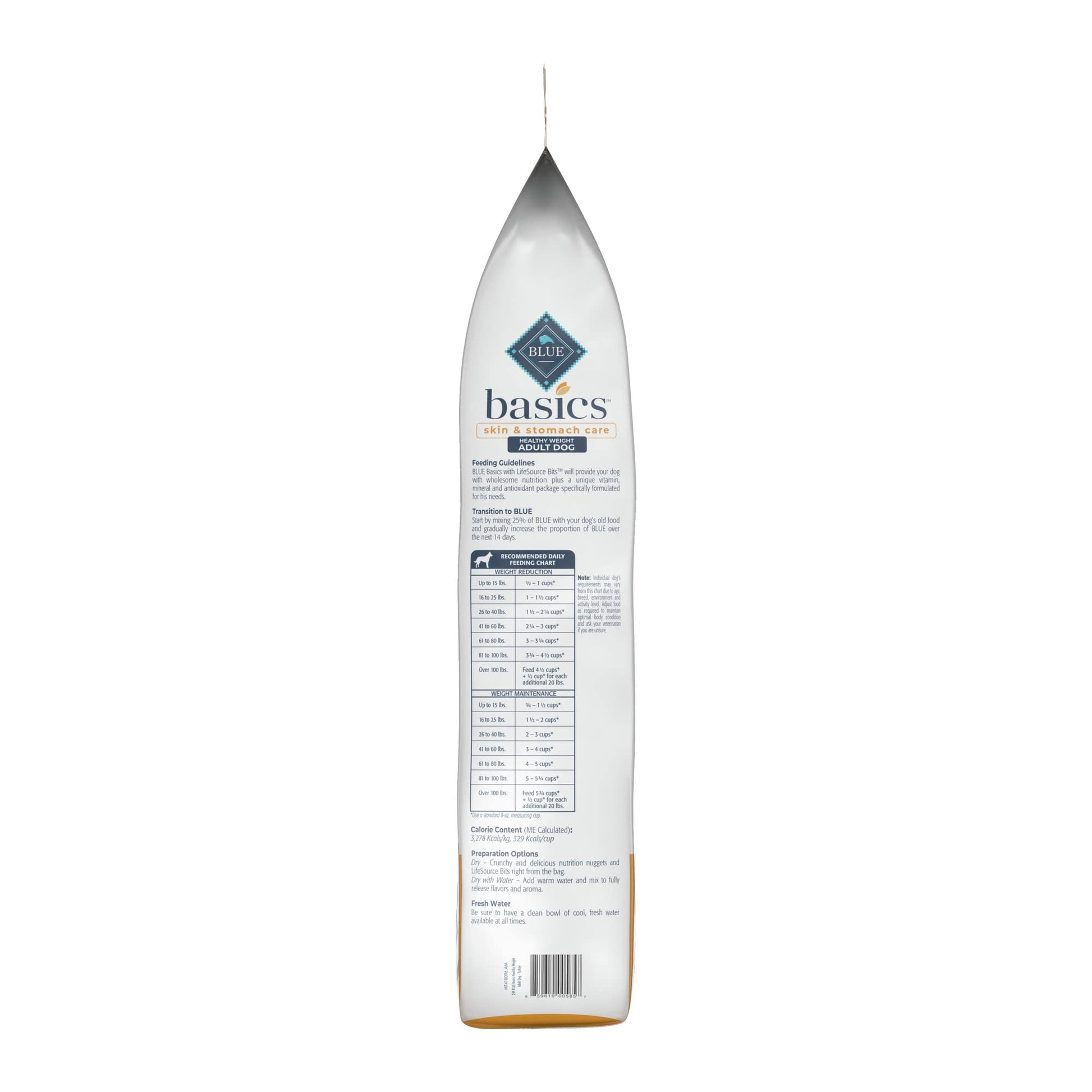 - Contains one (1) 24lb bag of BLUE Basics Skin & Stomach Care, Natural Adult Healthy Weight Dry Dog Food, Turkey & Potato