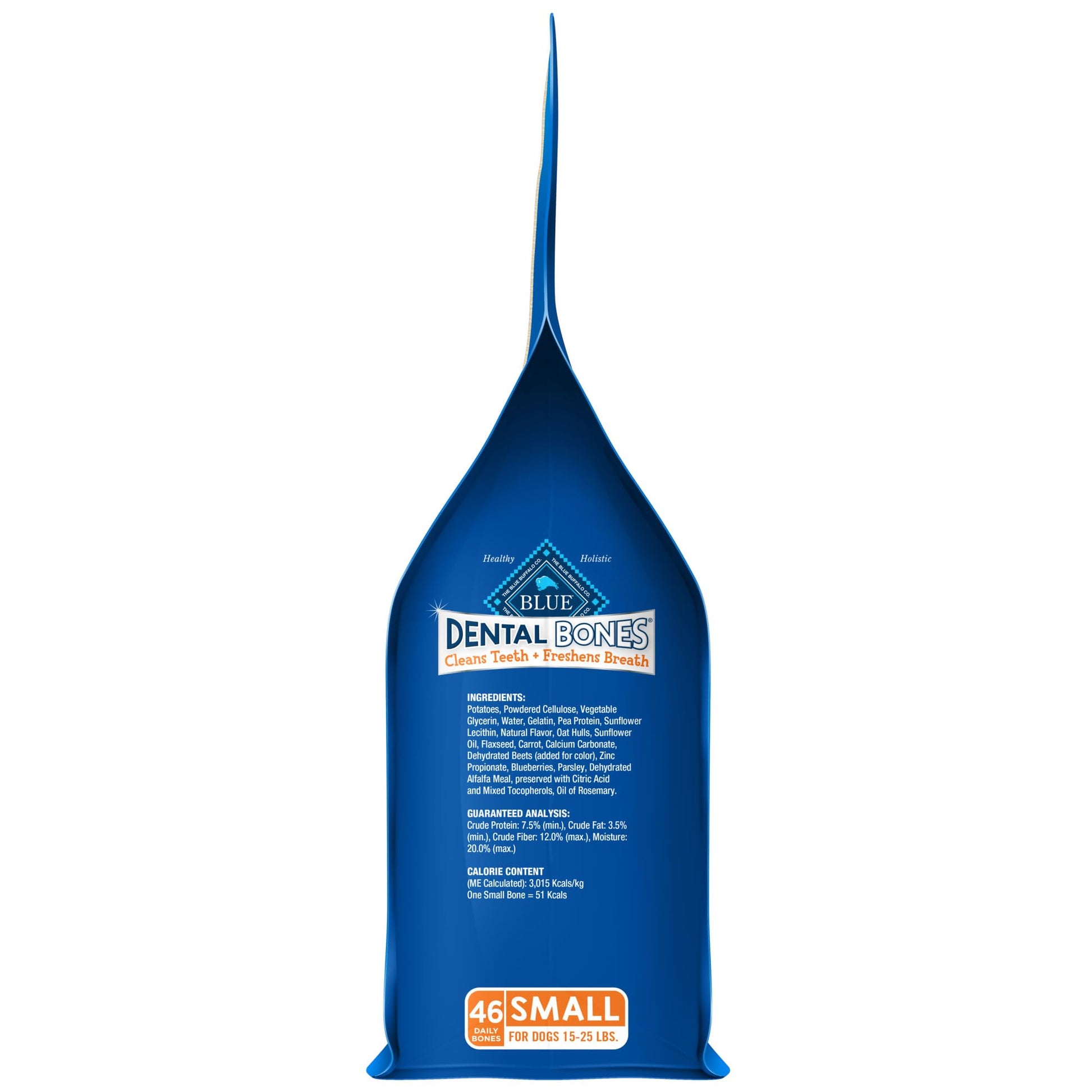 - Contains one 27-oz Value Pack bag of BLUE Dental Bones Natural Adult Dental Chew Dog Treat, Small 27-oz bag