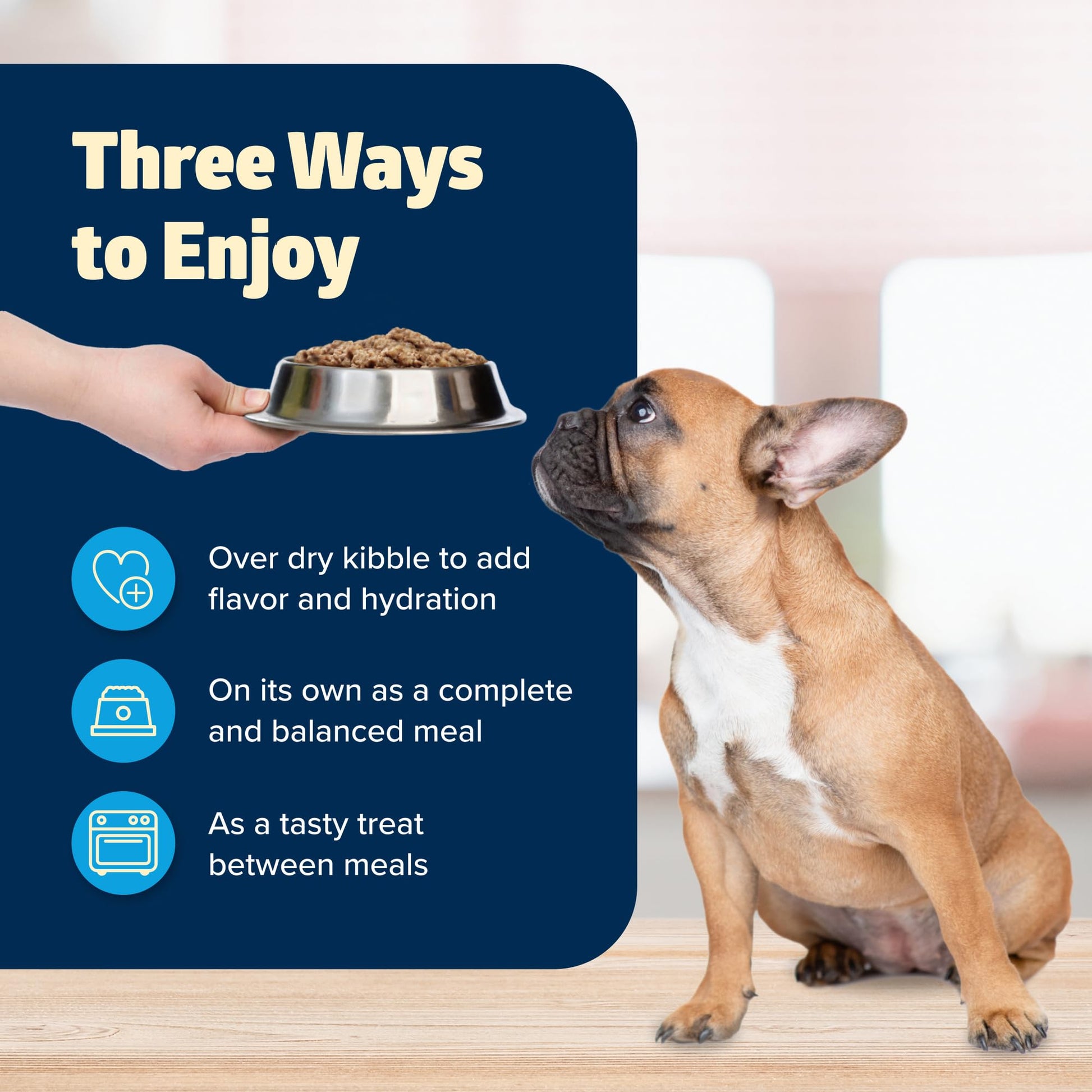 - FEED THREE WAYS: Mix this wet dog food into dry dog food, serve alone for a complete and balanced meal, or give as a tasty treat between meals