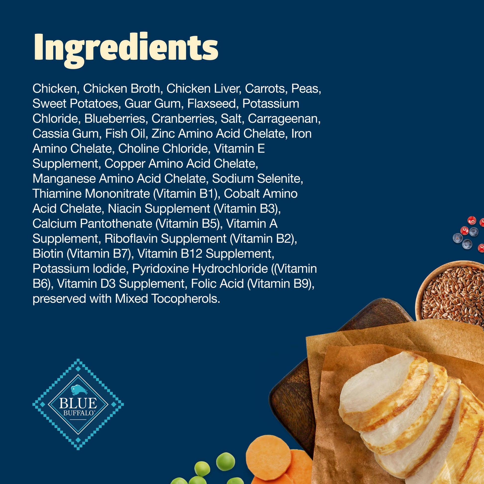 BLUE Freedom canned food is made with the finest natural ingredients—ingredients chosen with great care by our animal nutritionists, providing your dog with hiqh-quality protein and complex carbohydrates that he needs to stay active and healthy. Starts with delicious, protein-rich Chicken, Whole carrots, sweet potatoes, peas, blueberries and cranberries. NO chicken or poultry by-product meals, corn, wheat, soy and nothing artificial.