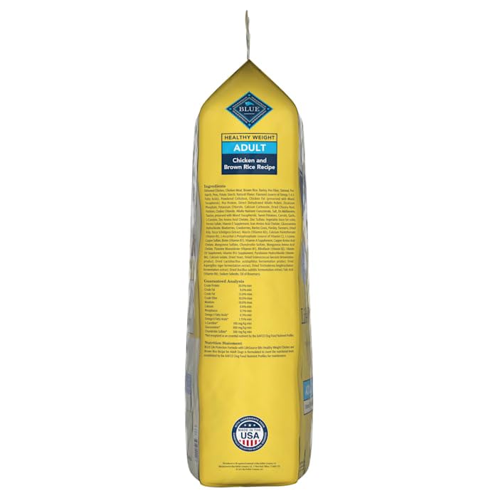 - Contains: One (1) 30-lb bag of BLUE Life Protection Formula Adult Healthy Weight Dry Dog Food, Chicken and Brown Rice