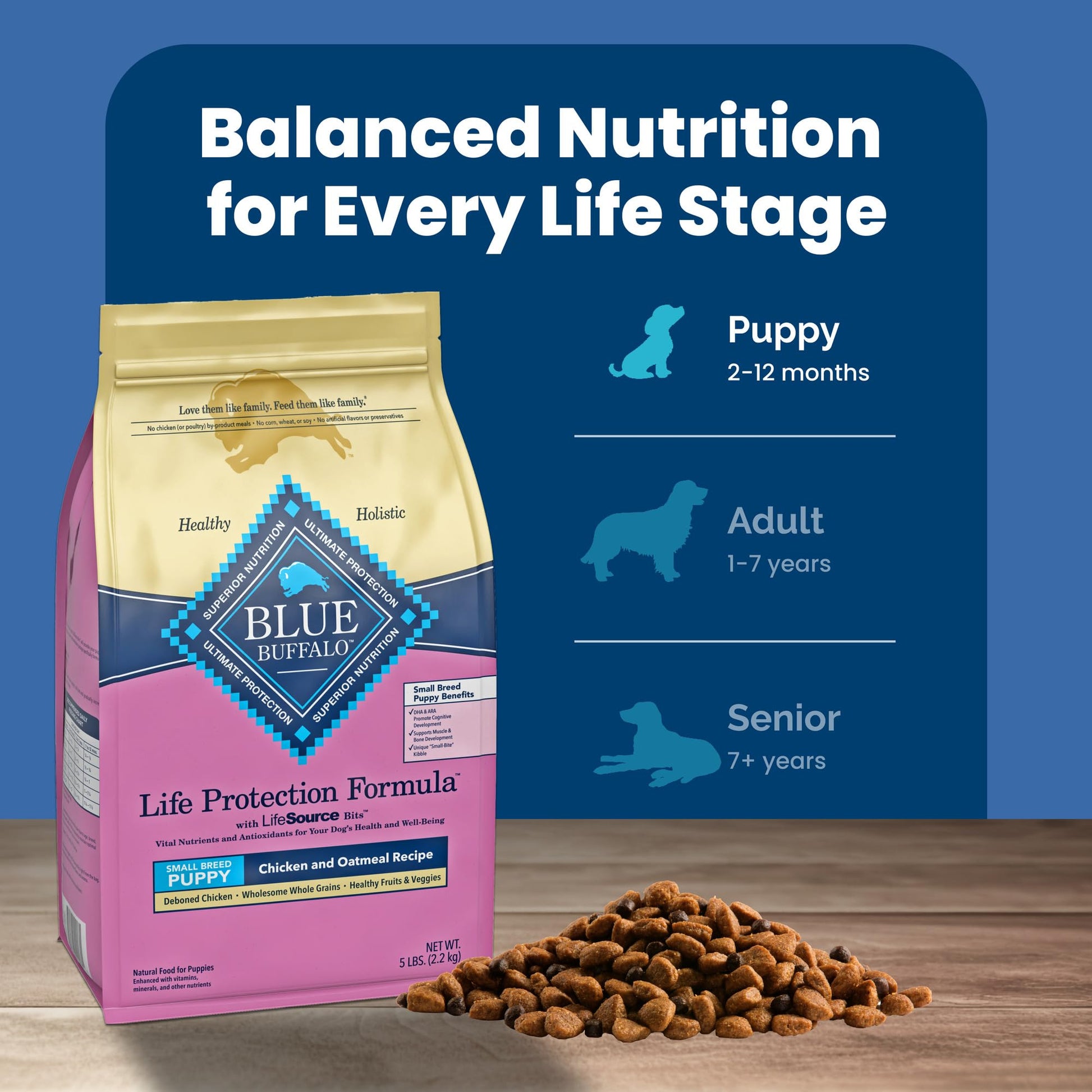 Blue Buffalo Life Protection Formula Small Breed Puppy Dry Dog Food with DHA, Vital Nutrients & Antioxidants, Made with Natural Ingredients, Chicken & Oatmeal Recipe, 5-lb. Bag