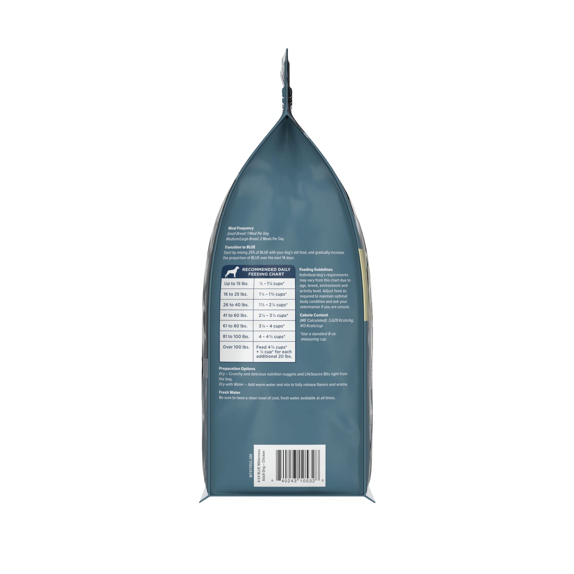 - CONTAINS: One (1) 4.5-lb bag of BLUE Wilderness Adult High-Protein Dry Dog Food with Real Chicken, Grain-Free, Made in the USA with Natural Ingredients, Chicken