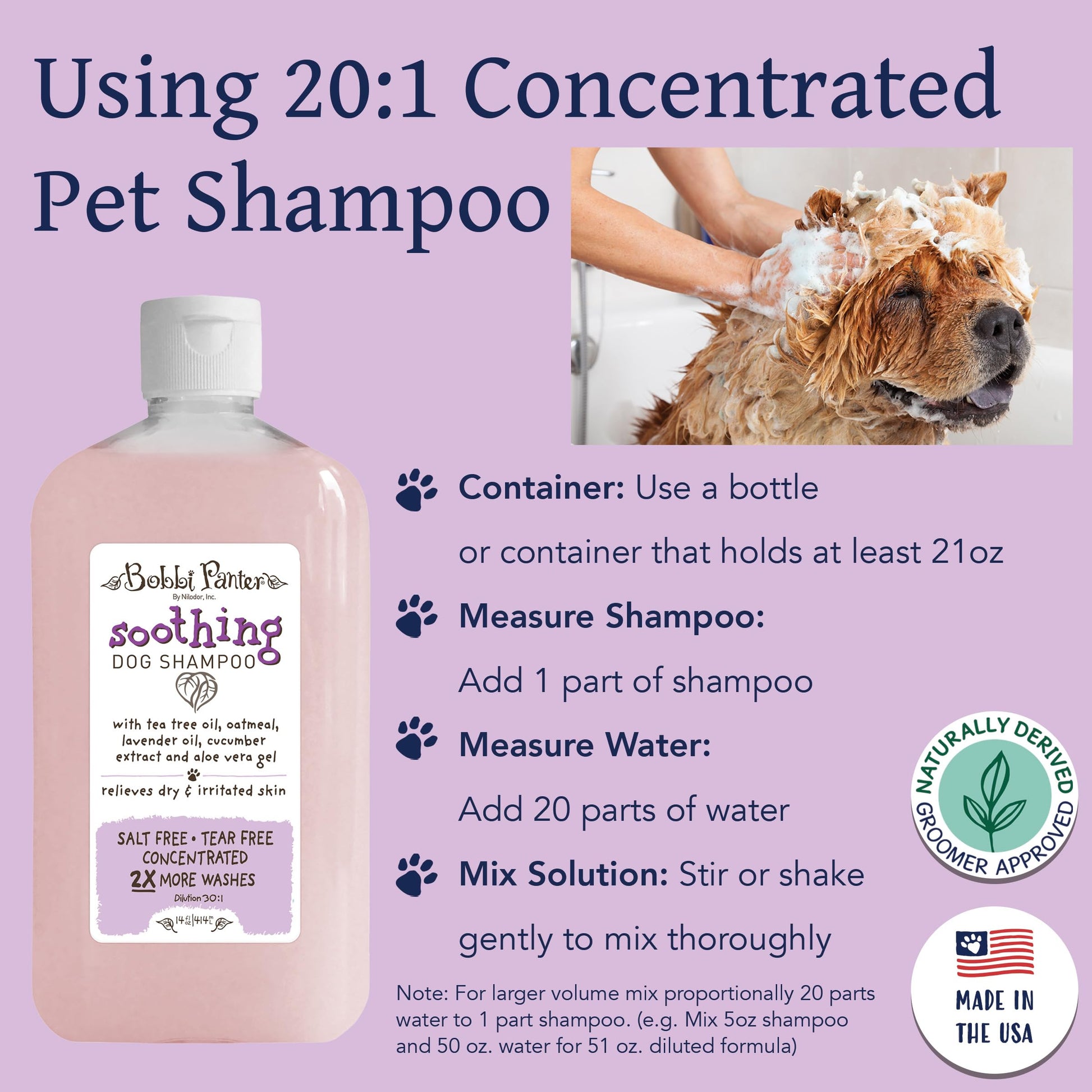 Bobbi Panter Soothing Dog Shampoo, Heals & Soothes Irritated Skin, Lavender Scent - 30:1 Concentrated Formula, Made in The USA, Trusted by Professional Groomers, 14 oz.