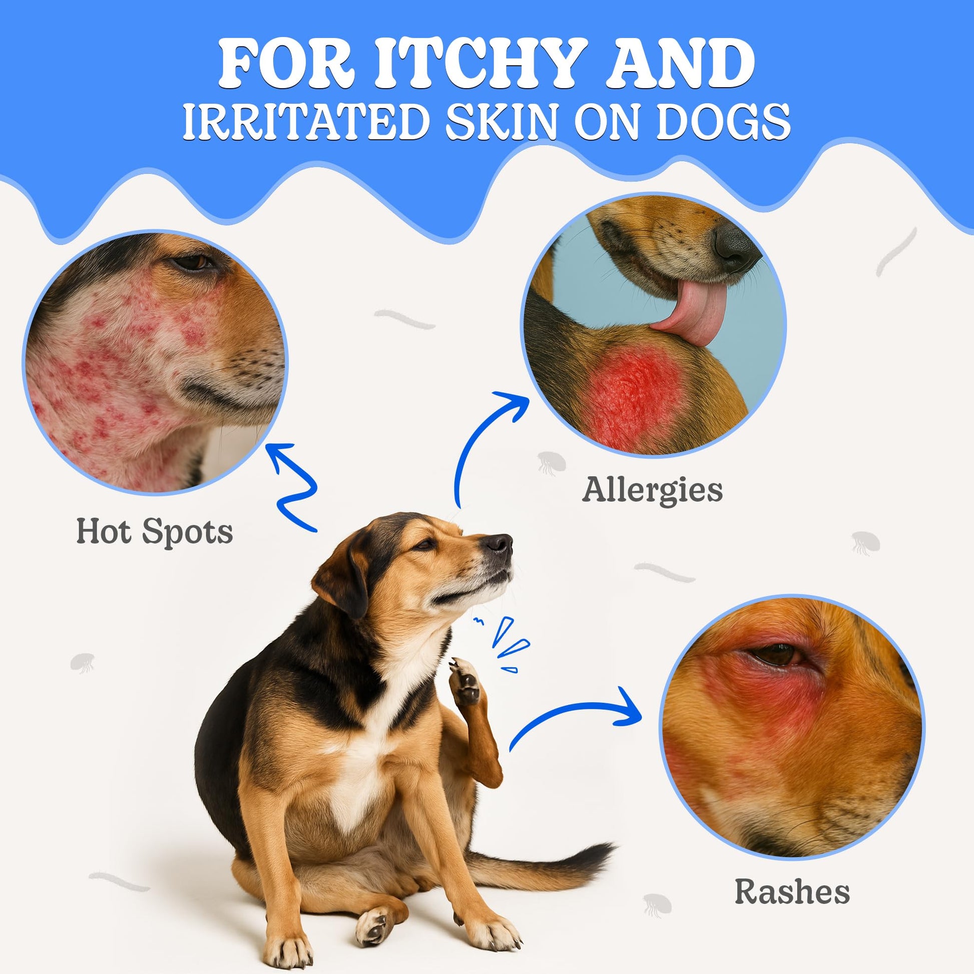 𝐌𝐨𝐢𝐬𝐭𝐮𝐫𝐢𝐳𝐢𝐧𝐠 𝐂𝐥𝐞𝐚𝐧𝐬𝐞: Made with saponified coconut, palm, olive, and castor oils, this allergy shampoo for dogs’ itching and licking doesn’t just cleanse, it moisturizes deeply, helping to restore skin balance while washing away allergens and dirt