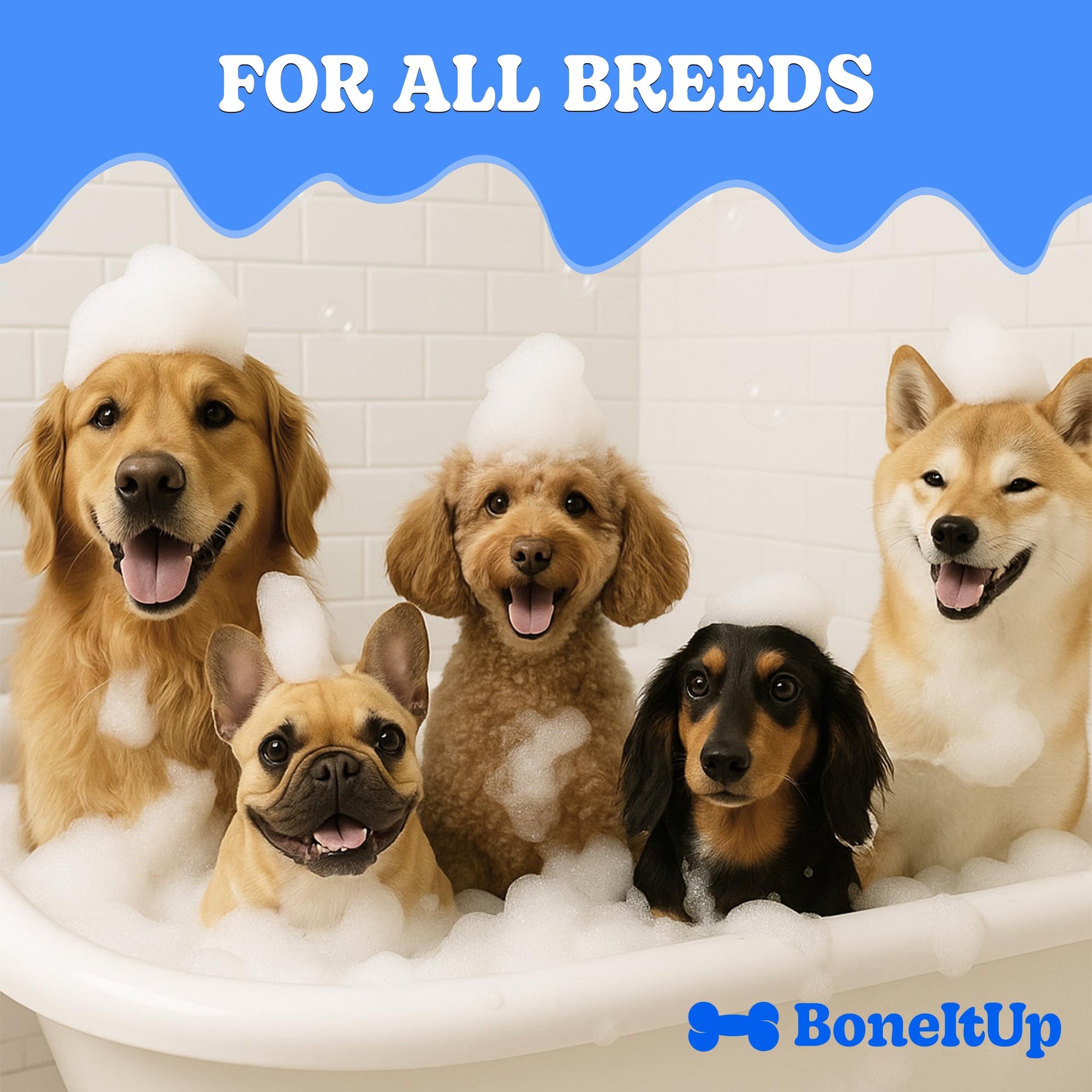 Details: BoneItUp Dog Shampoo Bar: Say goodbye to your dog’s constant scratching and discomfort with the BoneItUp Flea Soap, a soothing and natural solution for dry, irritated skin. Made with love and care, this 100g/3.5oz bar soap combines the healing power of nature with the nourishment your dog’s coat deserves. This itch relief body wash is more than just a soap—it’s a gentle grooming essential designed to calm, cleanse, and comfort your furry friend. At the heart of this soap for itchy skin is goat milk, known for its rich moisturizing properties and gentle cleansing action, perfect for dogs with sensitive skin. Mango butter deeply hydrates and supports skin regeneration, while essential oils in this dog shampoo natural bar of eucalyptus, tea tree, and neem provide natural relief from itching, and skin irritation. These ingredients are carefully blended with saponified coconut, palm, olive, and castor oils to deliver a rich lather that washes away allergens without drying out the skin. Whether it’s seasonal itching, or general dryness, this anti-itch pet soap delivers comfort in every wash. It’s easy to use, just wet your dog, rub the bar directly onto their coat or in your hands, and lather away. Give your pup a gentle massage while you clean, turning bath time into a bonding experience. Ideal for dogs of all breeds and coat types, this soap is free from harsh chemicals and artificial ingredients. Designed for external use only, our skin itchy relief soap is a safe, effective, and eco-friendly alternative to liquid shampoos. Pamper your pup with the natural power of BoneItUp—because a happy dog starts with healthy skin. About Us: BoneltUp is the ultimate kit for homemade pet treats. Start making the yummiest treats for your furry friends at home. Fun, easy, and delicious!