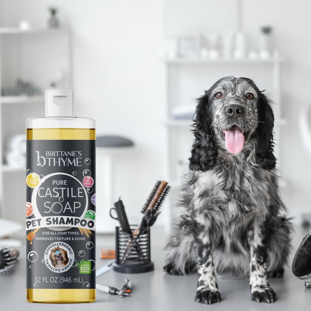 Details: Does your furry friend have itchy skin? Is their coat looking dull and lacking that healthy shine? Our gentle Castile Pet Shampoo is the answer you've been searching for! Made with a SOOTHING RELIEF formula based on all-natural castile soap, this shampoo is perfect for even the most sensitive skin.