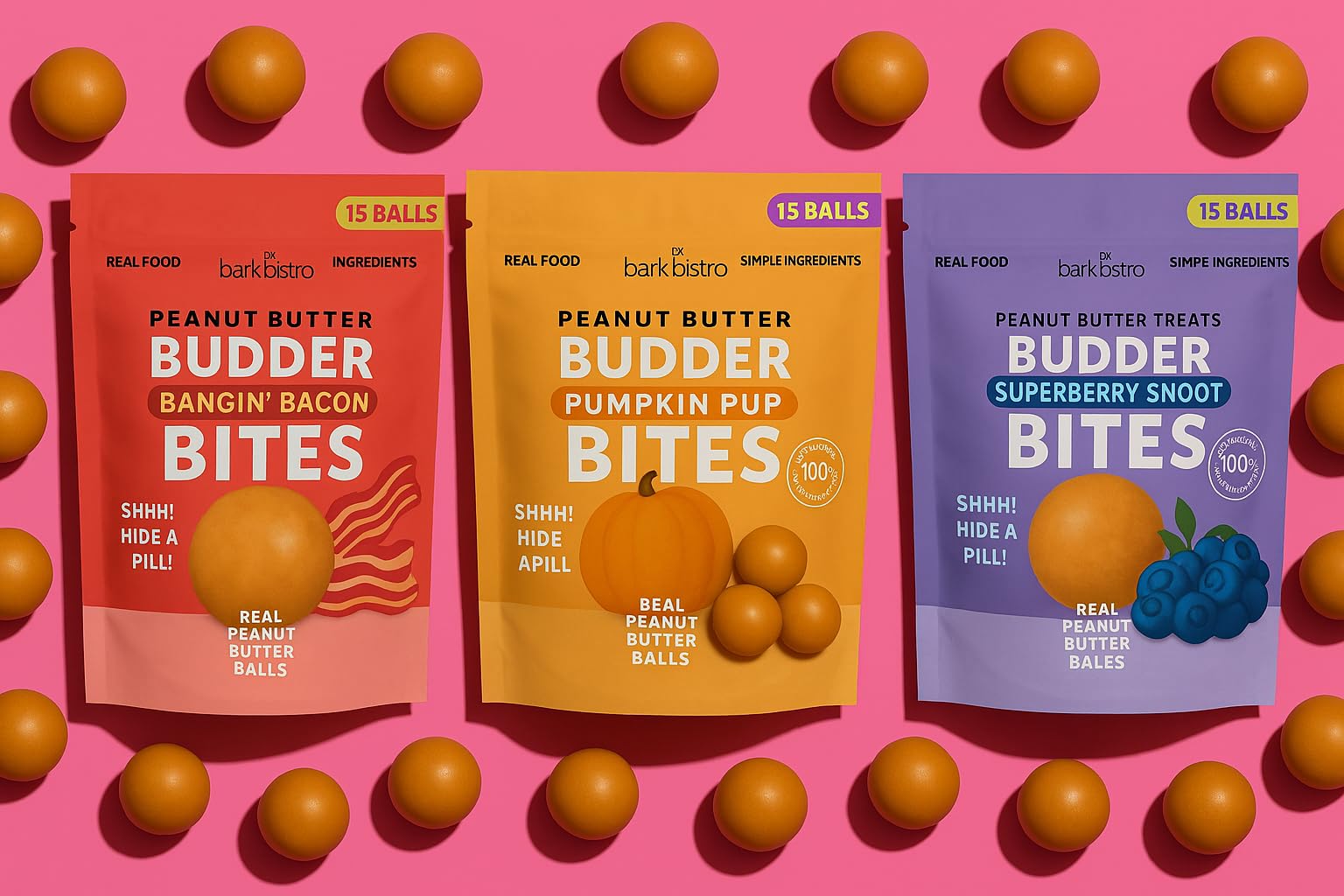 BUDDY BUDDER Superberry Snoot Bites, Natural Peanut Butter Dog Treats with Berry Flavor, Soft Peanut Butter Ball Treat or Use to Hide-A-Pill, 15 Balls, 5.3oz