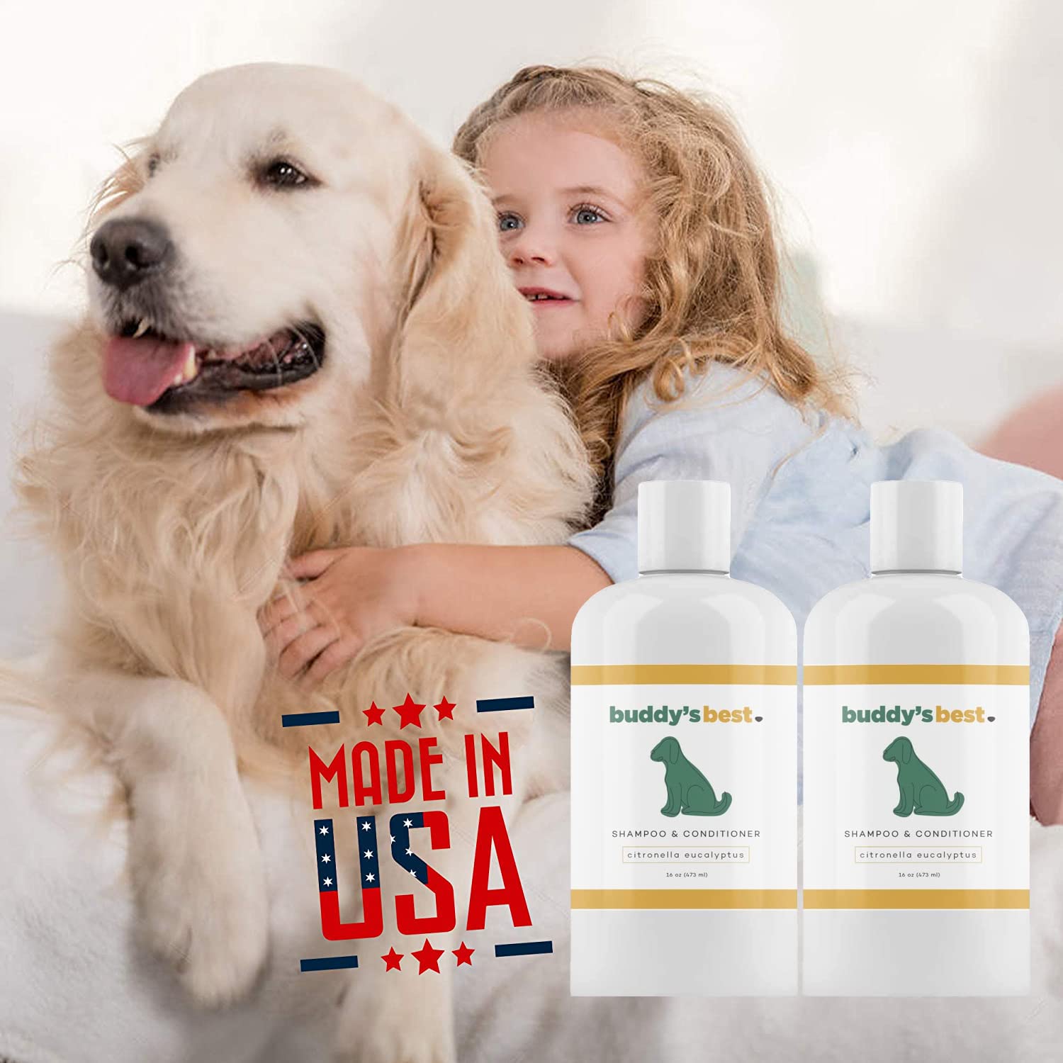 Buddy's Best Dog Shampoo for Smelly Dogs - Dog Shampoo and Conditioner for Dry and Sensitive Skin - Moisturizing Puppy Wash Shampoo, Citronella Eucalyptus Scent, 16oz