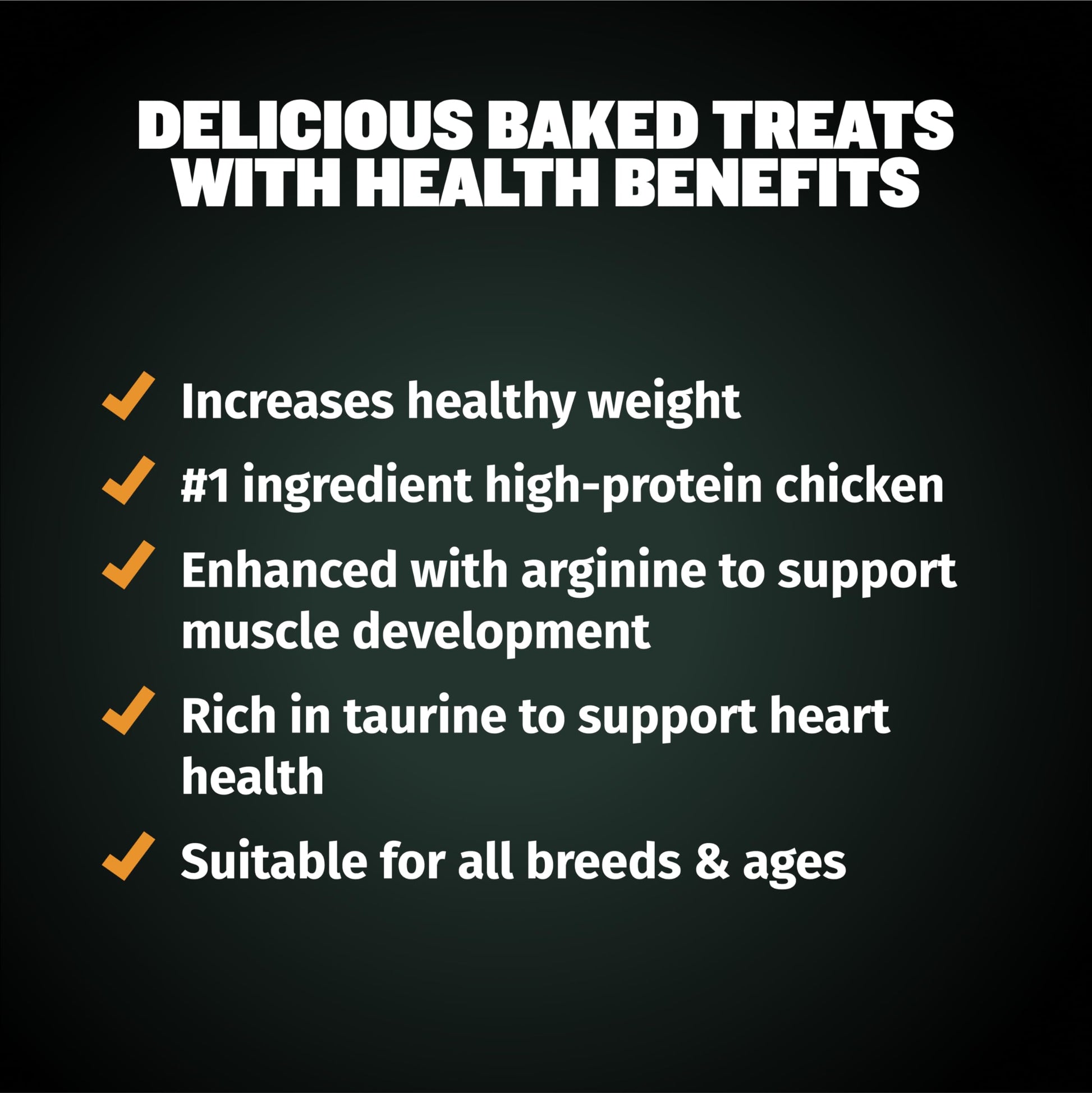- DENTAL HEALTH-ENHANCING CRUNCH: These baked chicken dog treats are not only delicious but also beneficial for your dog's dental health. Their crunchy texture helps clean teeth, reducing plaque and tartar buildup with each enjoyable bite. They're an ideal choice for dog owners looking to maintain their pet's oral hygiene while satisfying their canine's cravings. Ideal for puppies and adult dogs of all sizes, including small, medium, and large breeds.