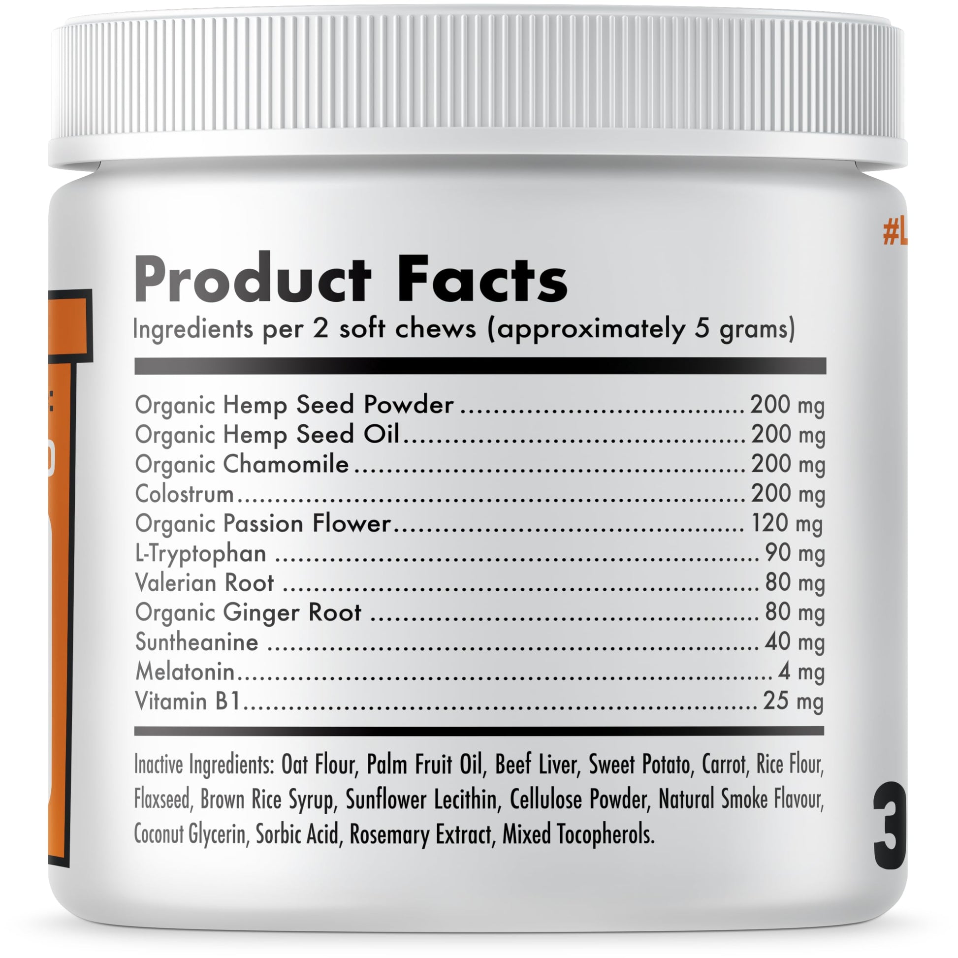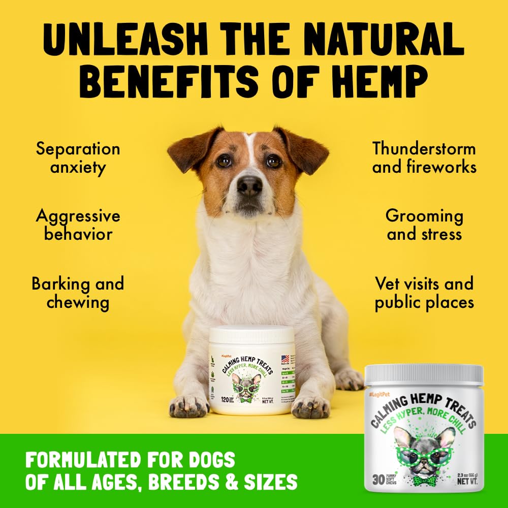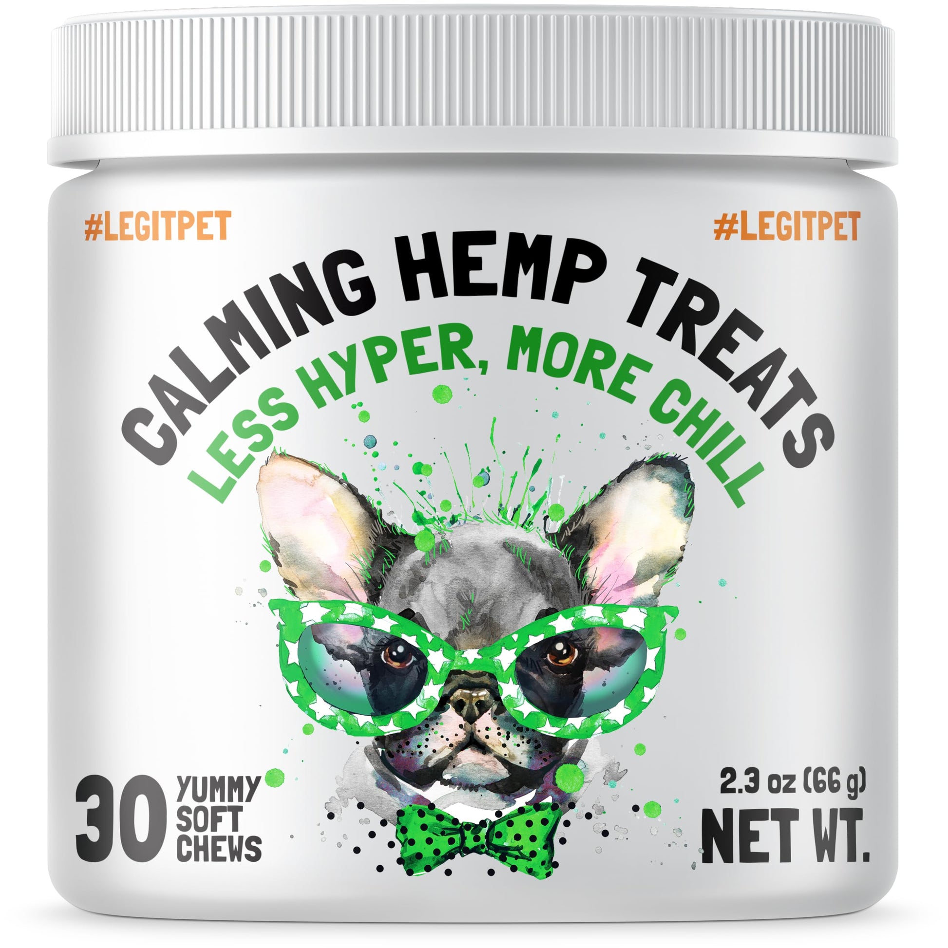 • You don't need a calming collar for dogs or calming spray for dogs! LEGITPET dog hemp chewables are much better, packed with organic chamomile, hemp plus valerian root — it's simply the best rescue remedy for dogs