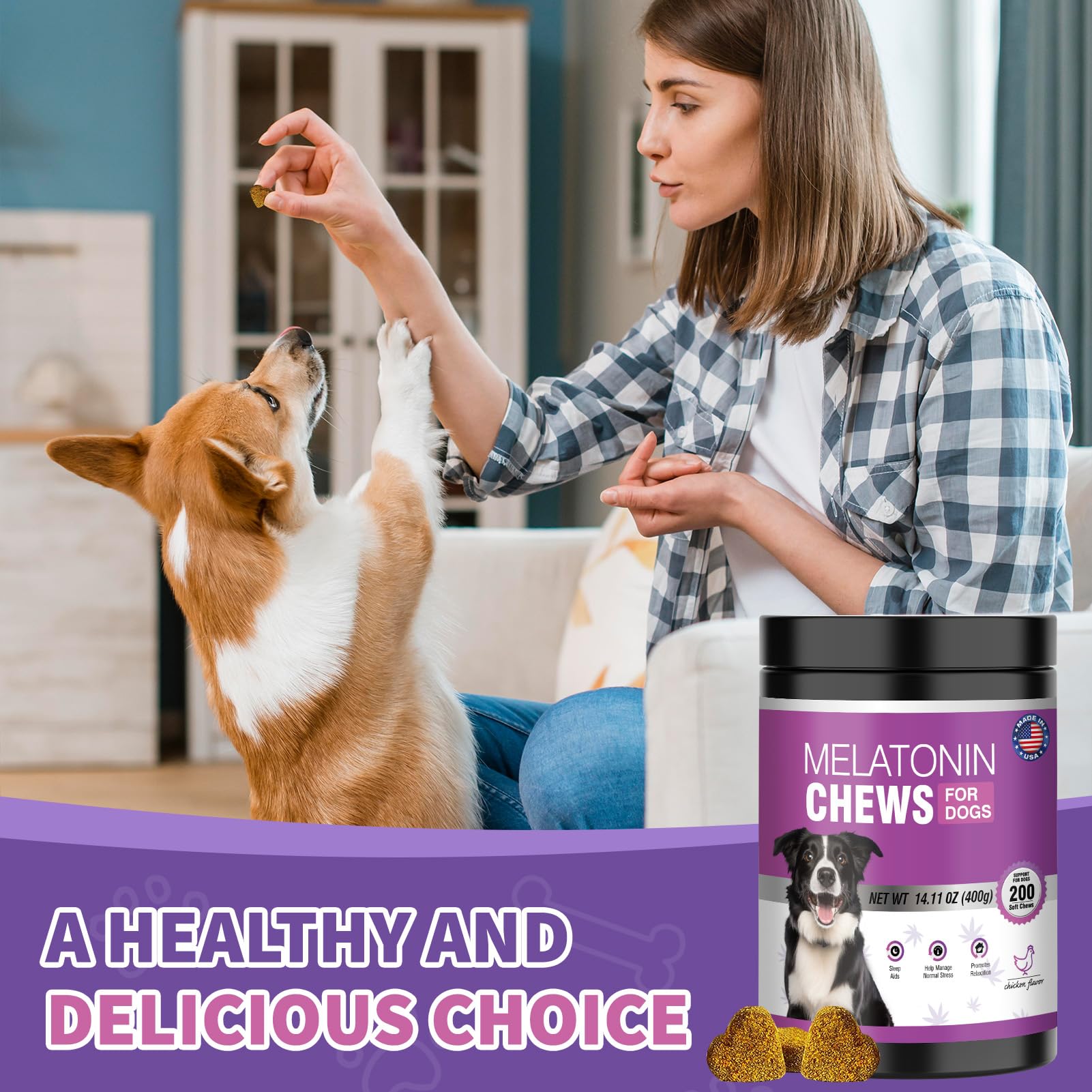 Calming Melatonin for Dogs Pet Chews Calming Treats for Sleep Aid Sleeping Pills Puppy Melatonin Bites Support Stress Anxiety Relief Separation for Small and Large Dogs 200ct (Chicken Flavor)