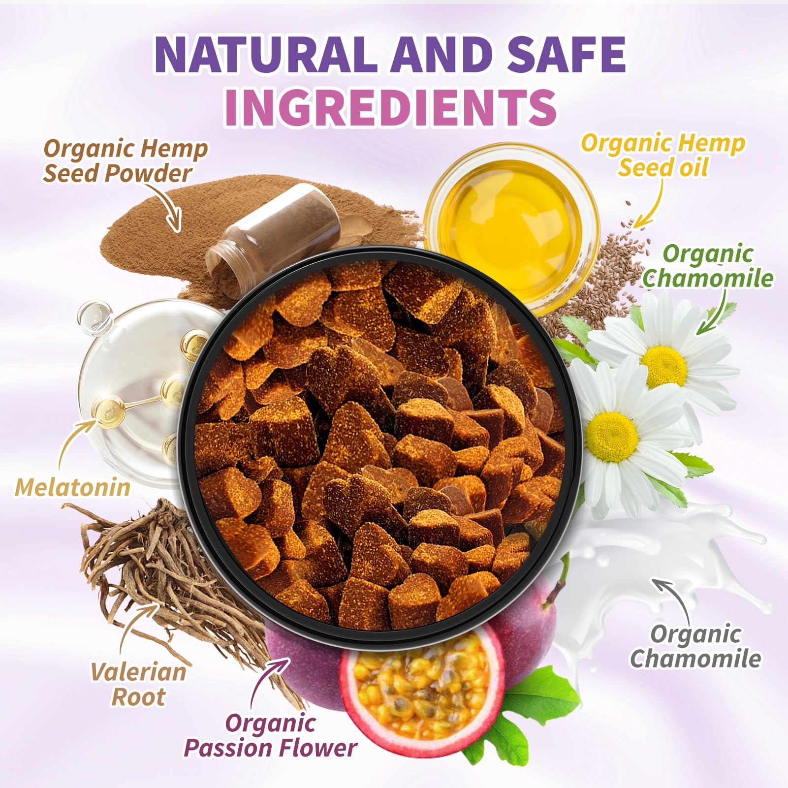 • Melatonin for small dogs contains carefully selects safe and healthy ingredien, We are well aware of your concern for your dog's health. So melatonin for dogs includes organic chamomile, L-tryptophan, valerian root, and vitamin B1. Dog melatonin is not only the chicken flavor that dogs love, but also rich in nutrition. Melatonin chews for dogs is not only a snack, but also an ideal choice to help dogs maintain health, happiness, and peace of mind