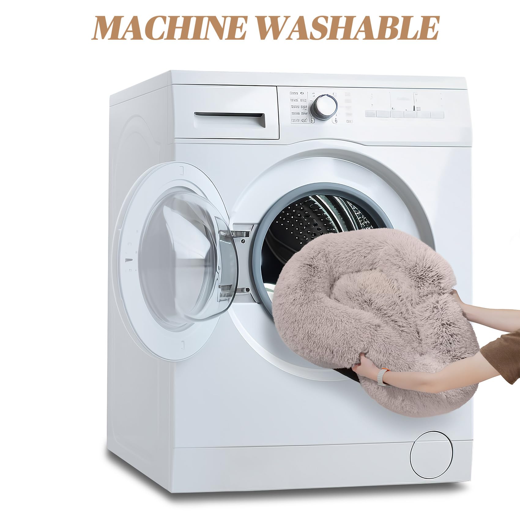 [SOFT AND COMFY SUPPORT]:The donut dog bed is filled with soft air PP cotton like clouds, and the round donut dog bed is very suitable for pets to curl up. The raised edges/pillow around the calming dog bed , providing soft support for the pet's neck and head, effectively relieving joint pain and muscle soreness in pets.