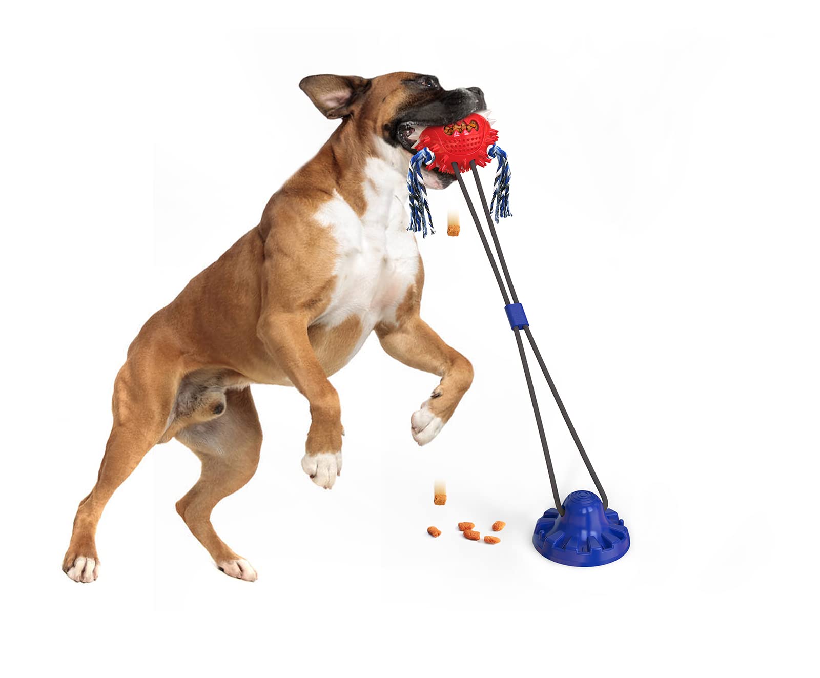 • [Multifunctional Dog Tug Toy] when the dog pulls the toy ball in the process of playing with this product, the anti-tiger bite pull rope can be transferred to form a dog pull tug toy through the fixed suckerm, which can actively mobilize the dog's interest in playing.