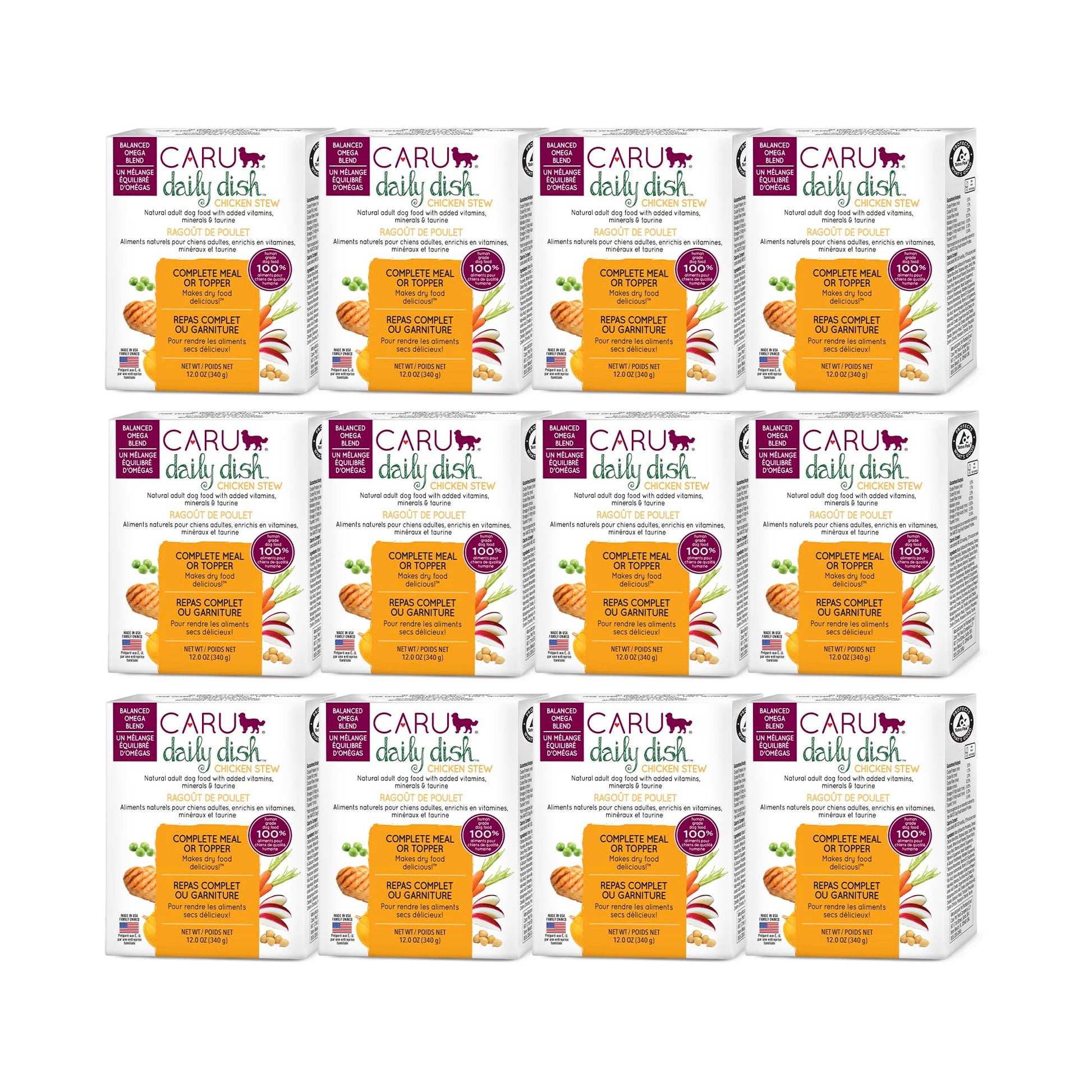 Caru Daily Dish Chicken Stew, Natural Adult Wet Dog Food with Real Chunks of Chicken, with Added Vitamins & Minerals, Non-GMO Ingredients (12.5 oz) - 12 Pack