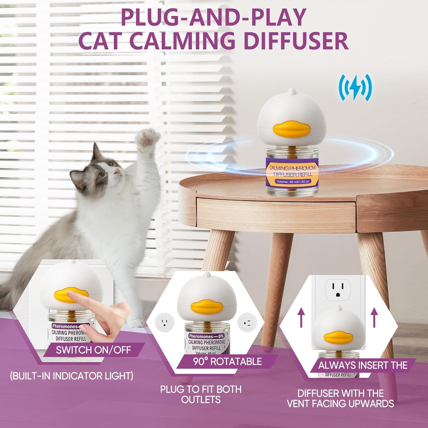• Simple Setup – Use With Care: Insert the diffuser with the vent facing up, and avoid placing it under shelves or furniture. Slight warmth during use is normal. For best results, plug it into an area where your cat frequently stays.