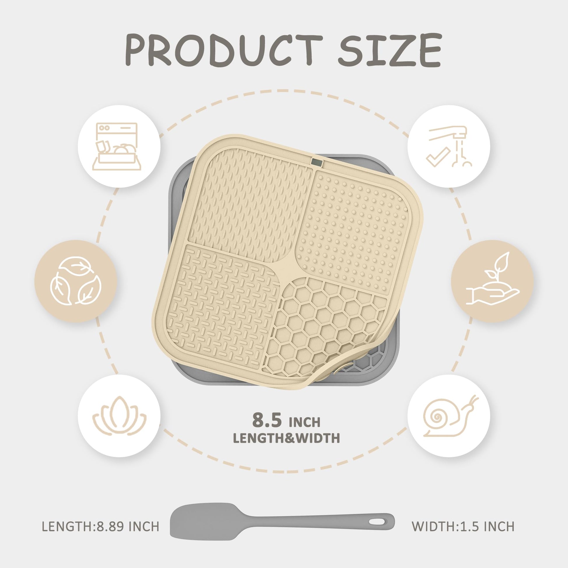 • Food-Grade Silicone:Our lick mat is crafted from premium food-grade silicone, 100% BPA-Free and Non-Toxic. 4 different textured surface design is perfect for yogurt, peanut butter, and other spreadable treats