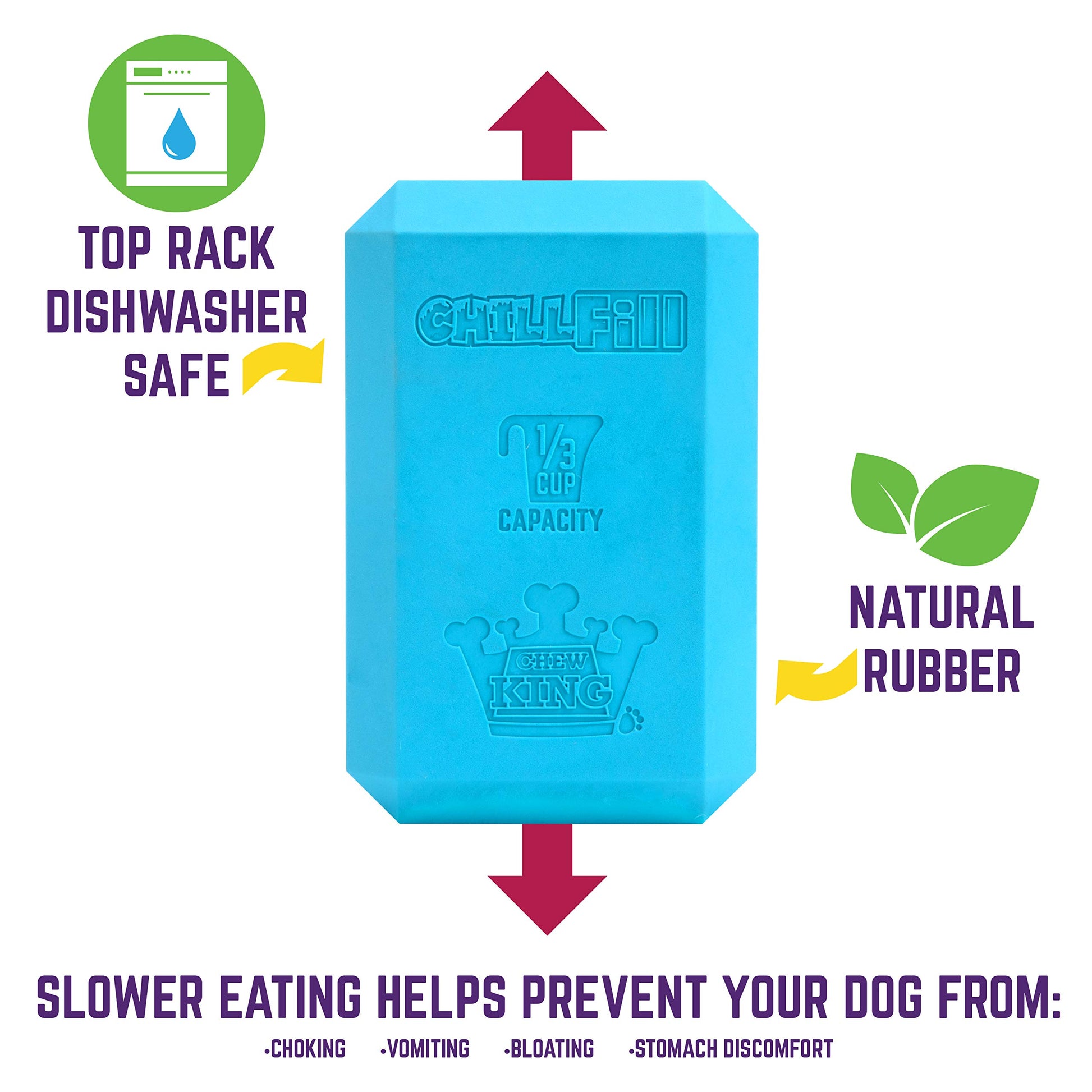 Details: Got a pup who’s a bit nervous every time you leave home? Here’s the perfect way for him to chill out. The Chew King Chill Fill is made of non-toxic, natural rubber and fits a meal’s worth of treats for almost any pups – it comes in three different sizes – all in a shape that makes a fun challenge for your pet. “Frozen Feeding” - just fill with your pup’s favorite kibble, add a bit of water, and park a Chill Fill in your freezer. The next time you’re headed out the door, want to slow down dinnertime a bit, or just want to give your pal a treat, take it out and watch him happily go to town.