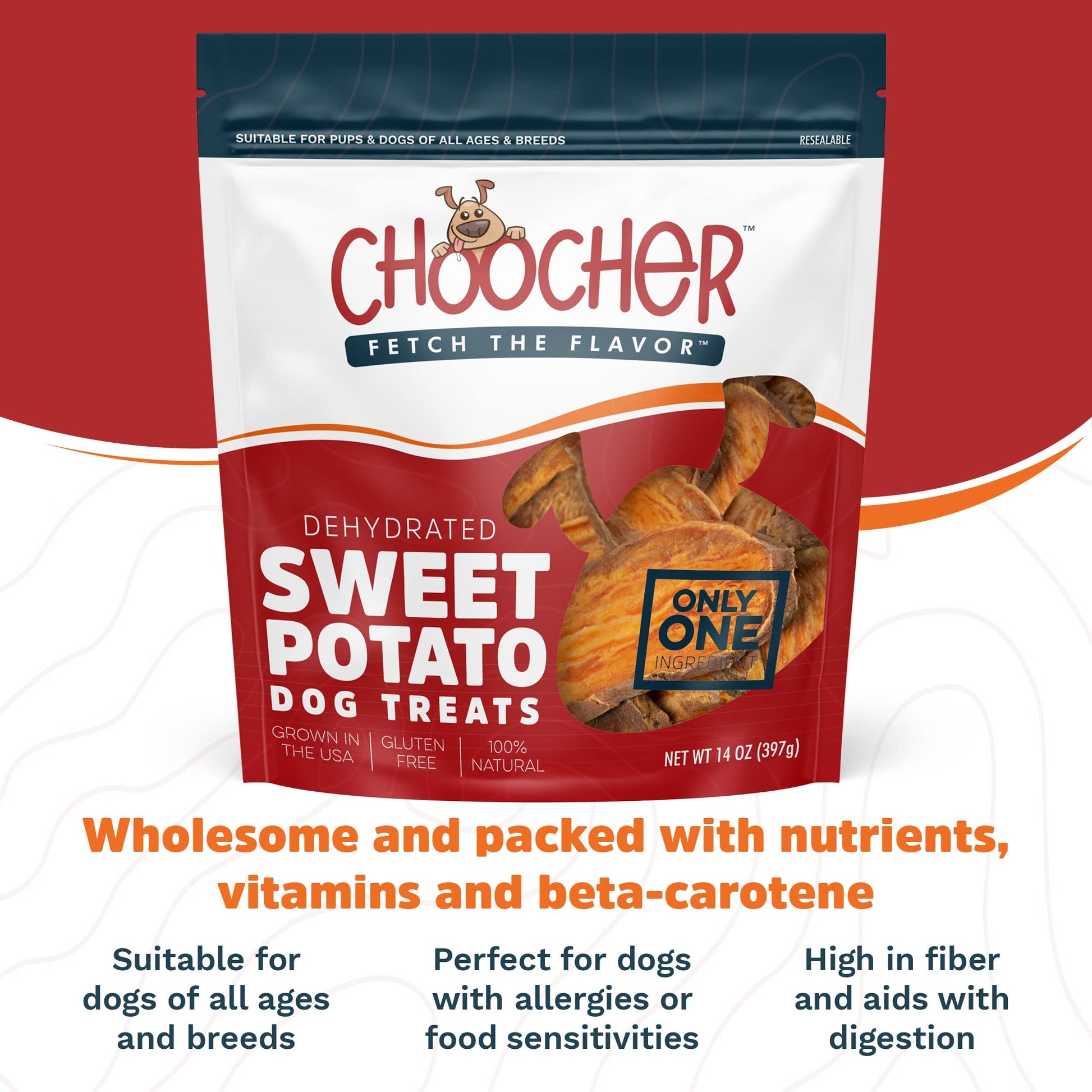 CHOOCHER Dehydrated Sweet Potato Dog Treats - High Fiber Gluten Free & Vegan Dental Chews for Small Medium Large Dogs - Made in USA Dog Chews for Training Teeth Cleaning & Healthy Digestion