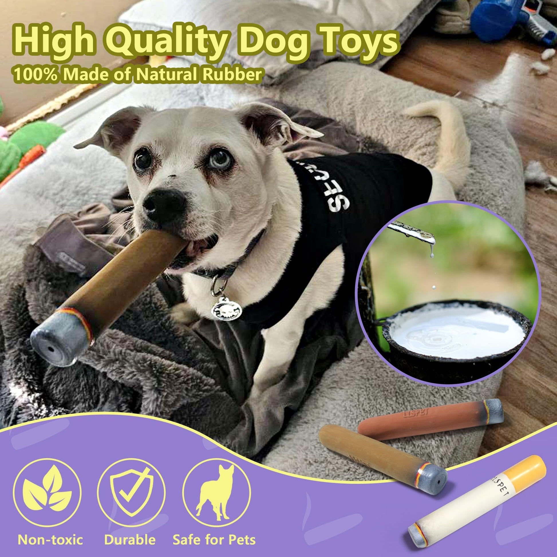 - Cigar and Cigarette Dog toys are made of natural rubber, safe and reliable materials. The thickness is uniform and has good resilience. The dog toy will not deform after squeezing or biting. The dog toy is non-toxic. Same as your love for your pet, each of our toys is carefully designed for your pet.