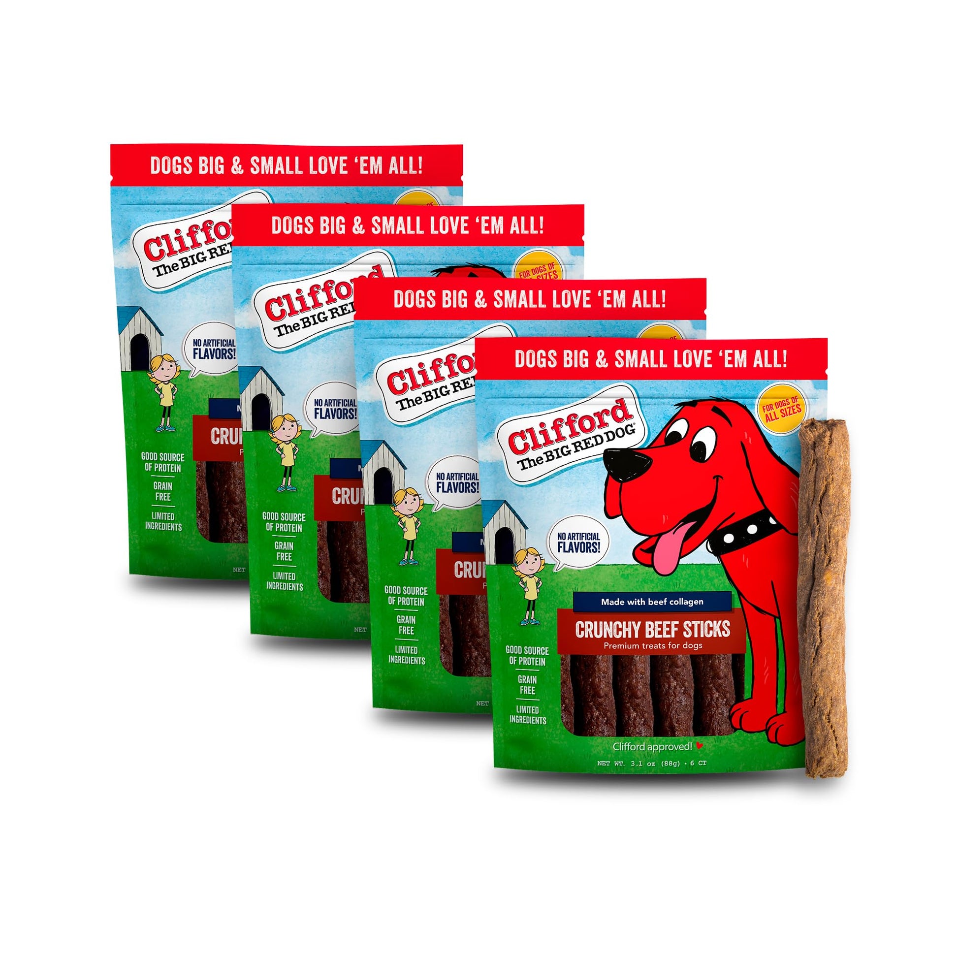 Clifford The Big Red Dog Soft Training Treats for Puppies and Dogs – Healthy, High Protein, Grain Free, Soft Puppy Treats for Small Dogs and Large – Real Crunchy Beef Sticks – 24ct