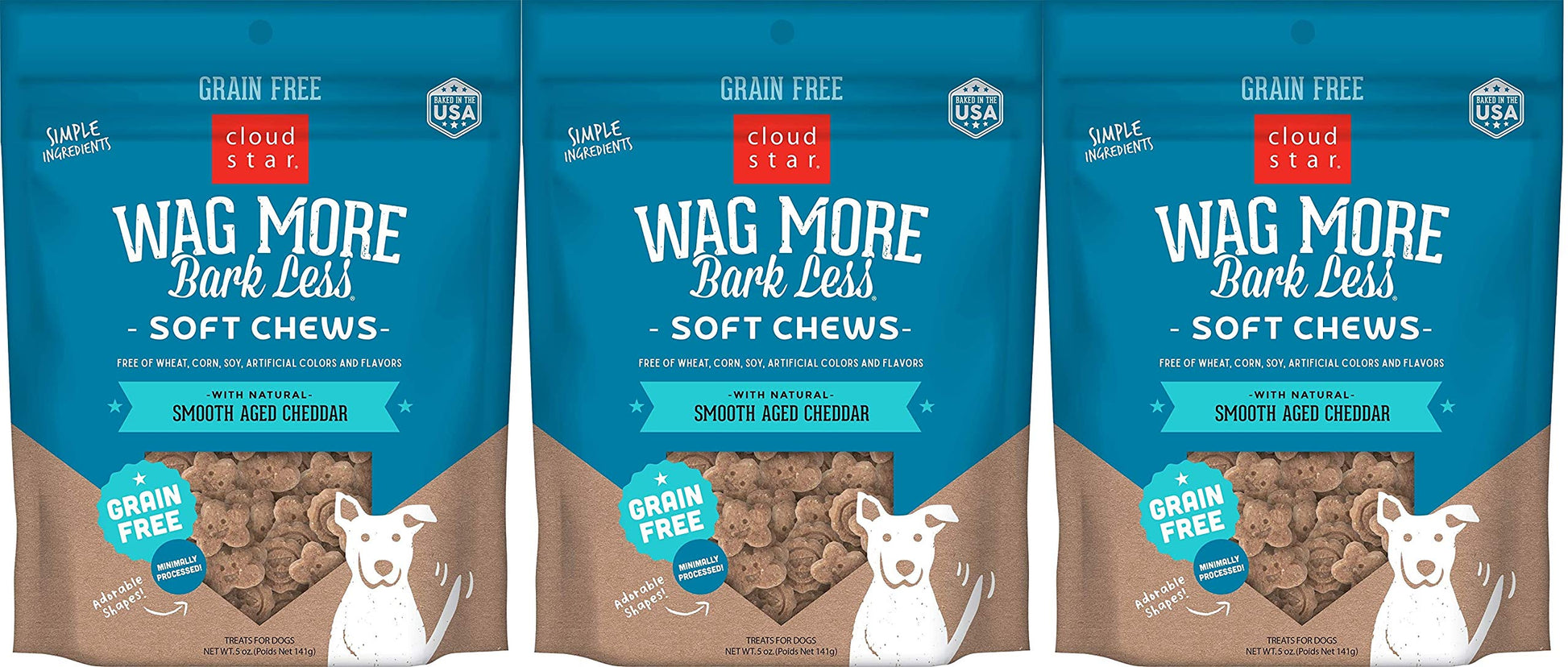 Cloud Star 3 Pack of Wag More Bark Less Soft Chews Dog Treats, 5 Ounces Each, with Smooth Aged Cheddar