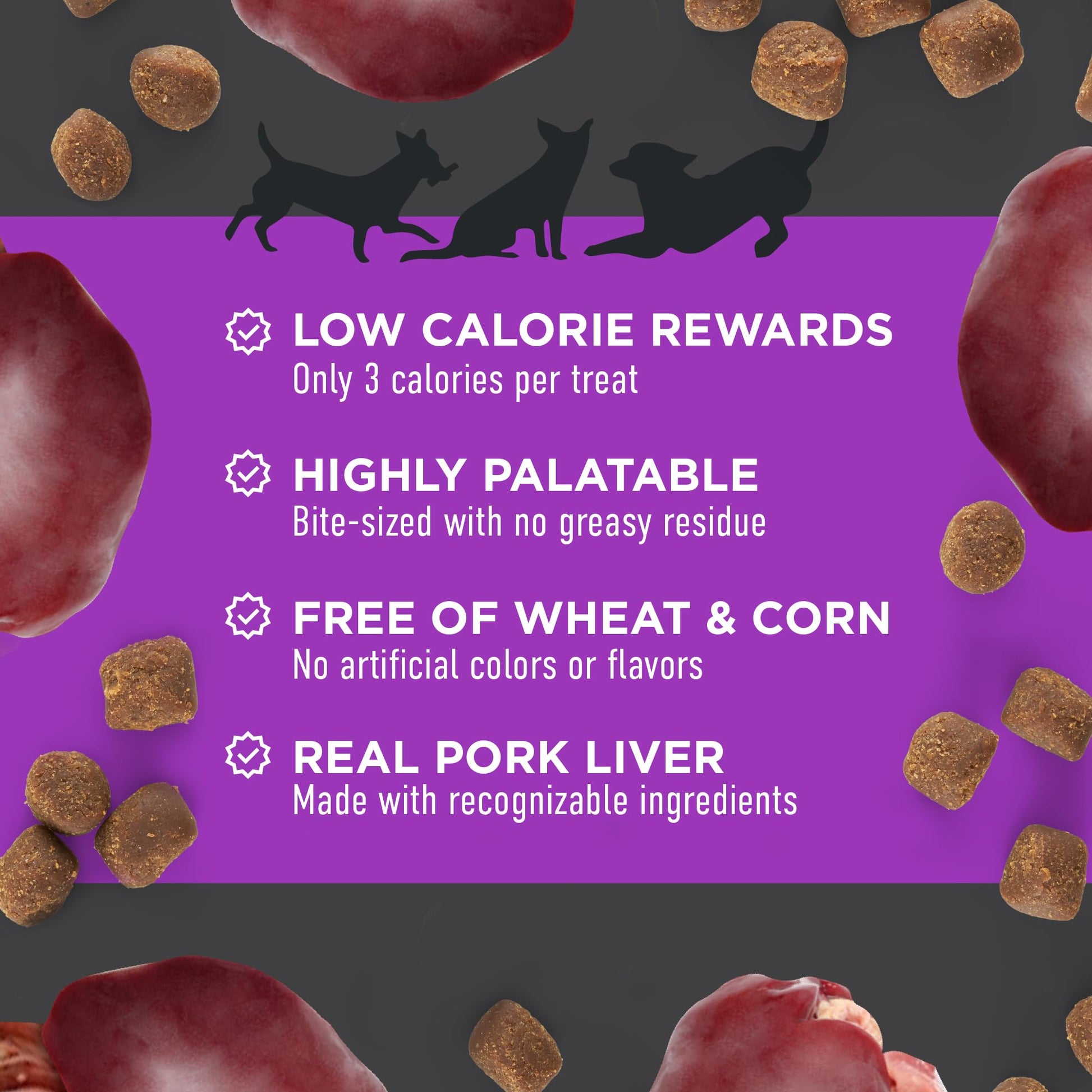 - HIGHLY PALATABLE & MOTIVATING These high protein, chewy training treats are made with real chicken liver that tastes and smells amazing, keeping your dog’s attention for successful training.