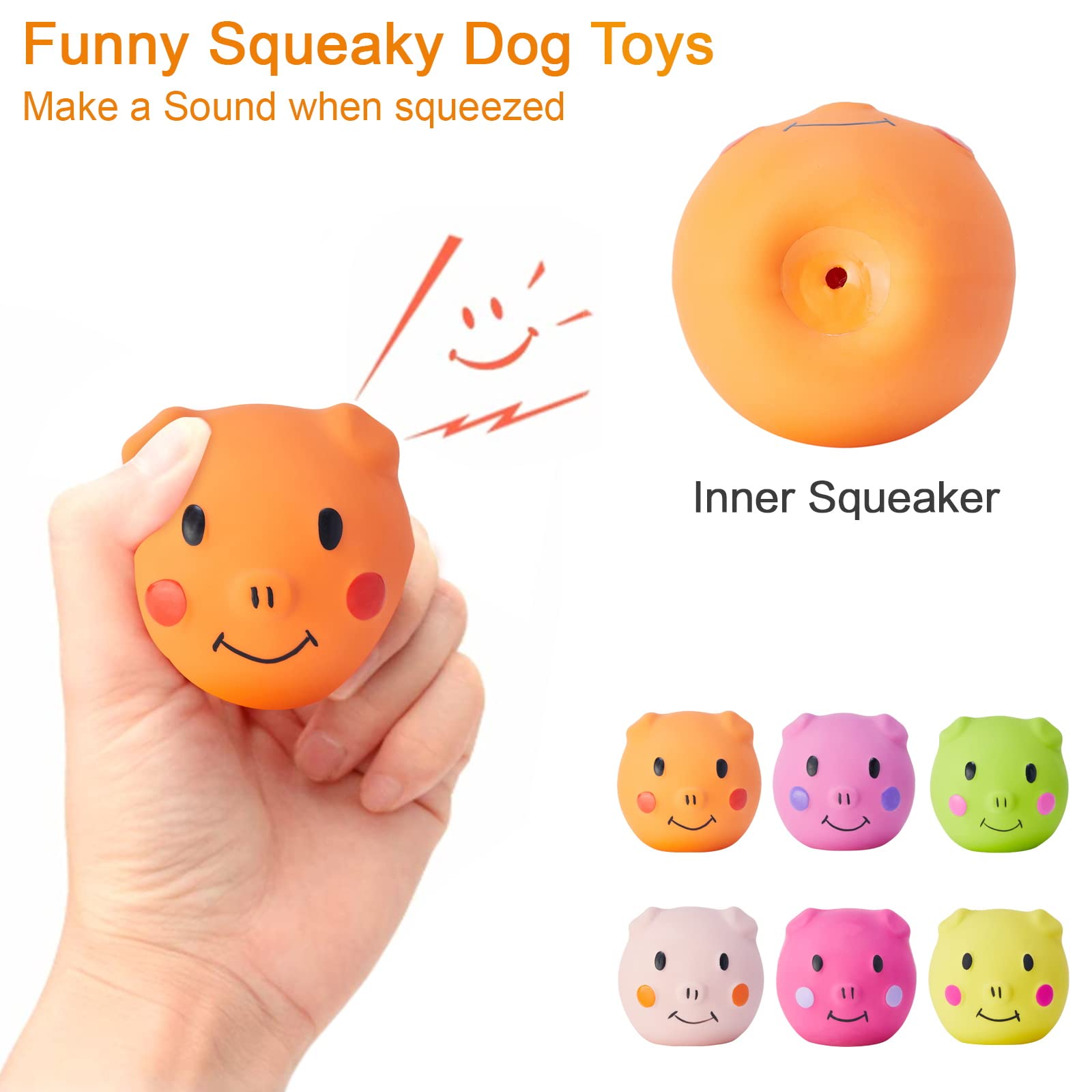 • 【Cute Piggy Face】- 6 Pcs Cute piggy face squeaky dog toys for one pack,which is dog and people like it very much.This is the best gift for small & medium dog.