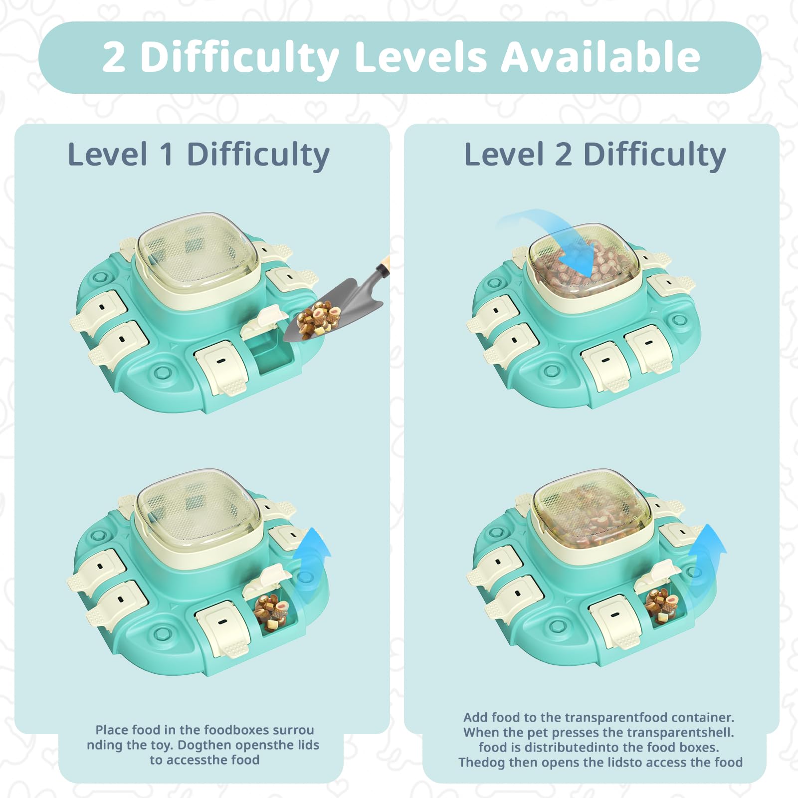 • [2 Training Levels Available] This dog puzzle toy includes different challenge levels to help dogs get treat. You can choose the appropriate difficulty for your dog to train, with beginner and advanced levels available for play. The dog slow feeder is a great gift that can bring joy to your dog.