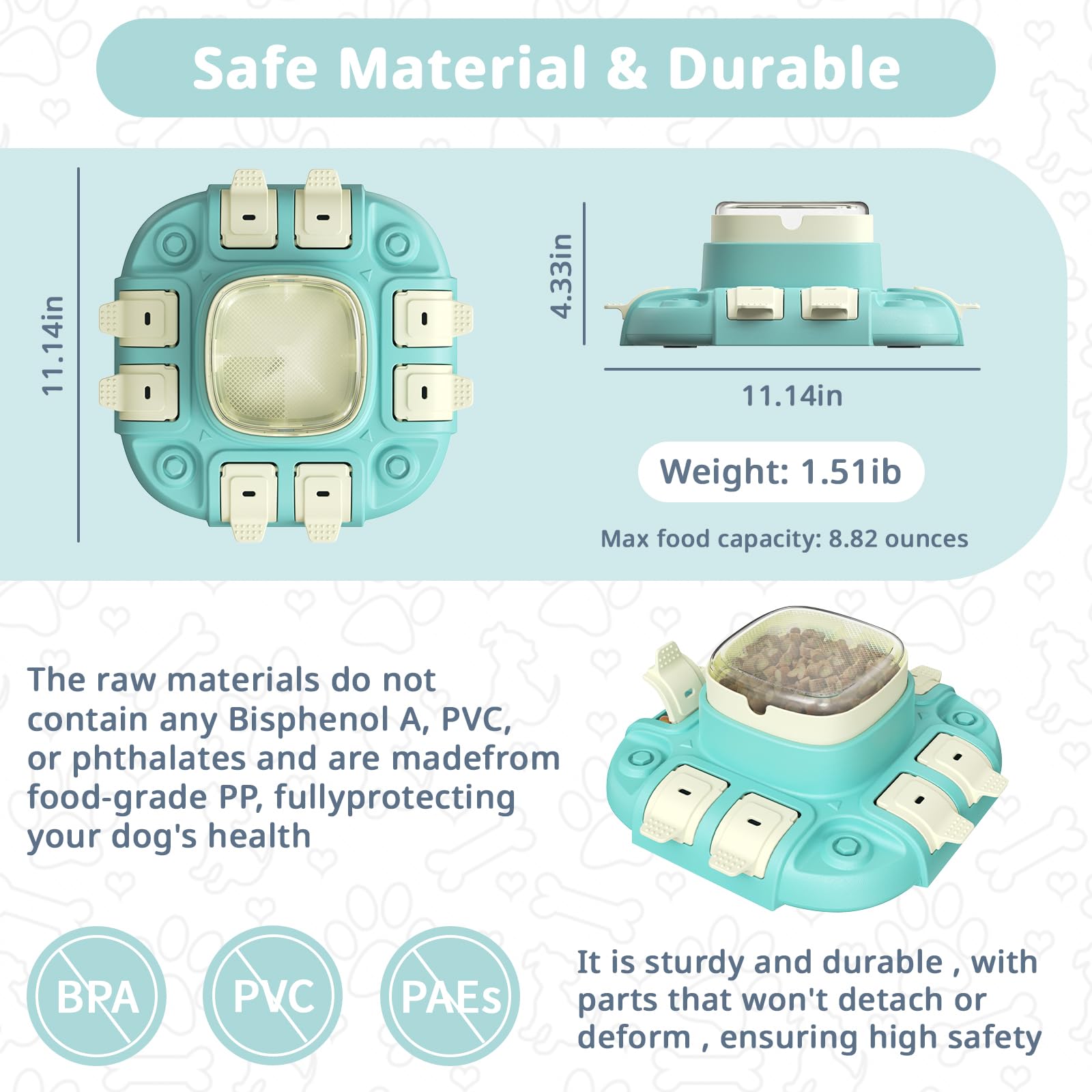 • [Safe Food-grade Materials & Durable] This interactive dog toy is made of food-grade PP material, free from BPA, PVC, and Phthalates, ensuring the safety of your dog's meals. The dog puzzle toy for smart dogs is highly wear-resistant and impact-resistant, making it suitable for your dog's chewing and playing without being easily damaged.