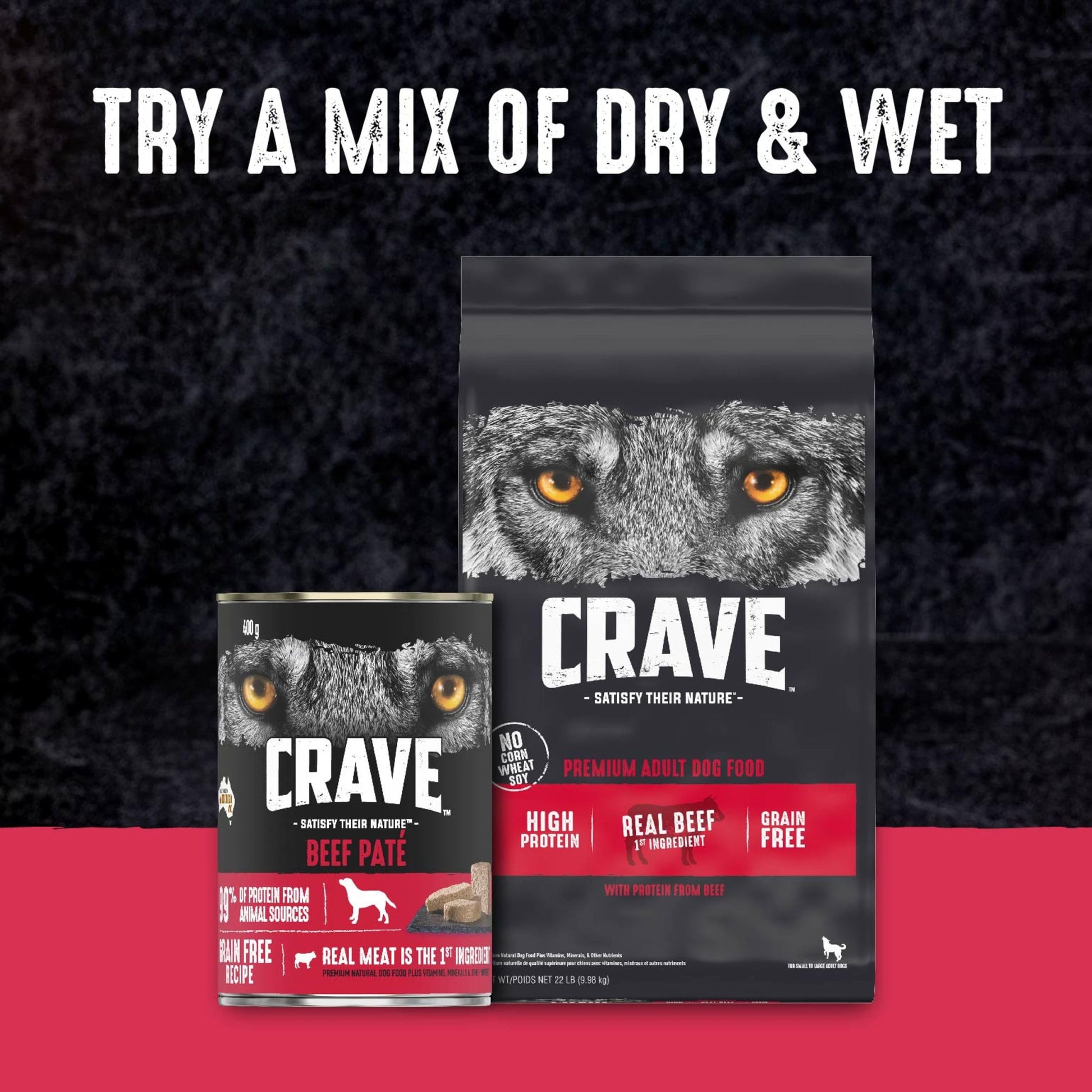 - Contains one (1) 22 lb. bag of CRAVE Grain Free Adult Dry Dog Food with Protein from Beef—for any size dog