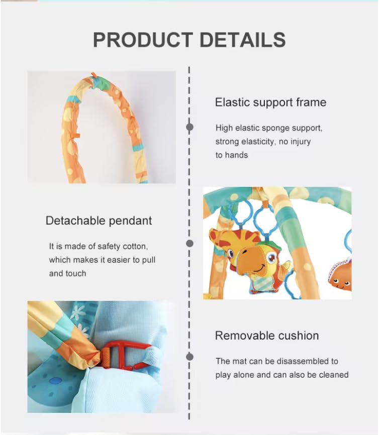 Details: Introducing the Pet Paradise Play Gym – the ultimate haven for your furry friend's playtime adventures! Crafted with love and designed to cater to your puppy's (or kitty's) need for entertainment and stimulation, this innovative playmat promises hours of fun and excitement. Say goodbye to separation anxiety as your puppy gets lost in a world of swinging squeaky toys and vibrant colors. Also great to keep pets busy while you work from home! The Pet Paradise Play Gym is specially engineered to captivate your pet's attention, providing mental and physical stimulation that aids in reducing anxiety and boredom. But the benefits don't stop there! This play gym is more than just a source of amusement. It's a valuable tool for teaching essential skills such as physical coordination, tactile training, visual training, and independence. Watch as your pet learns to navigate through the array of toys and obstacles, honing their motor skills and fostering a sense of independence. Pet Paradise Play Gym’s thoughtful design is made with gradients of yellow and blue – colors specifically chosen to appeal to a pet's vision – this playmat ensures that every moment is visually stimulating for your furry friend, keeping them engaged and happy! Whether your pet is jumping around or snuggled up in a cozy corner, the Pet Paradise Play Gym provides a safe and enriching environment for them to thrive. So why wait? Treat your pet to the ultimate playtime experience and create a paradise of joy and excitement right in your own home. Order now and let the adventures begin!