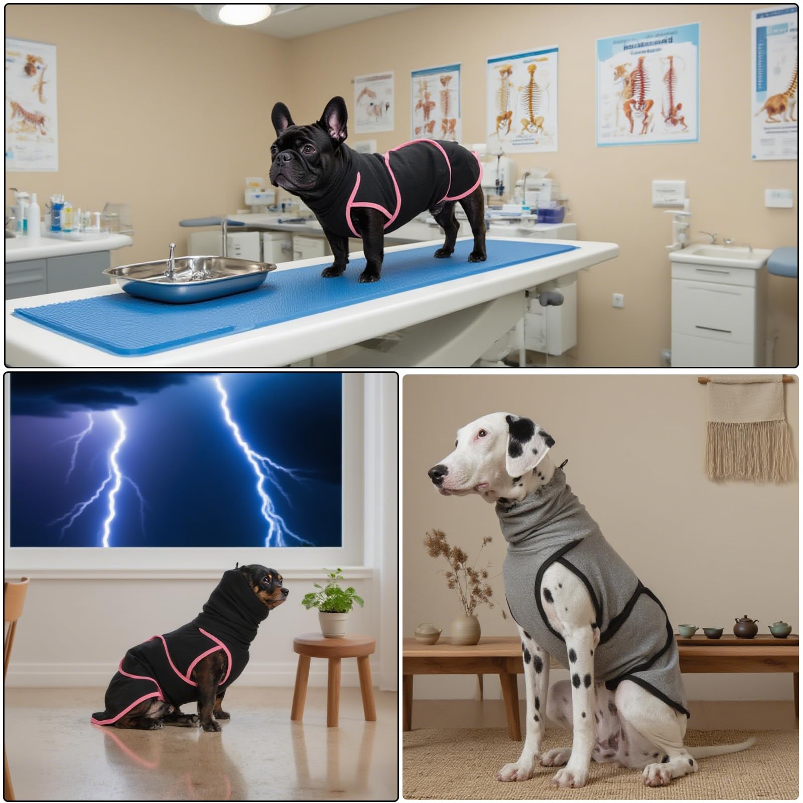 • Dog Anxiety Relief Shirts: When your dog experiences fear during thunderstorms, anxiety from separation, car travel, traffic, medical treatments, extended periods of solitude, noise-related anxiety, or displays aggressive behavior towards people or other dogs, using a dog anxiety relief vest is an effective and safe method to help soothe your dog's anxiety and promote calmness. The vest applies gentle, continuous pressure to calm fear and over-excitement, snugly enveloping your dog.