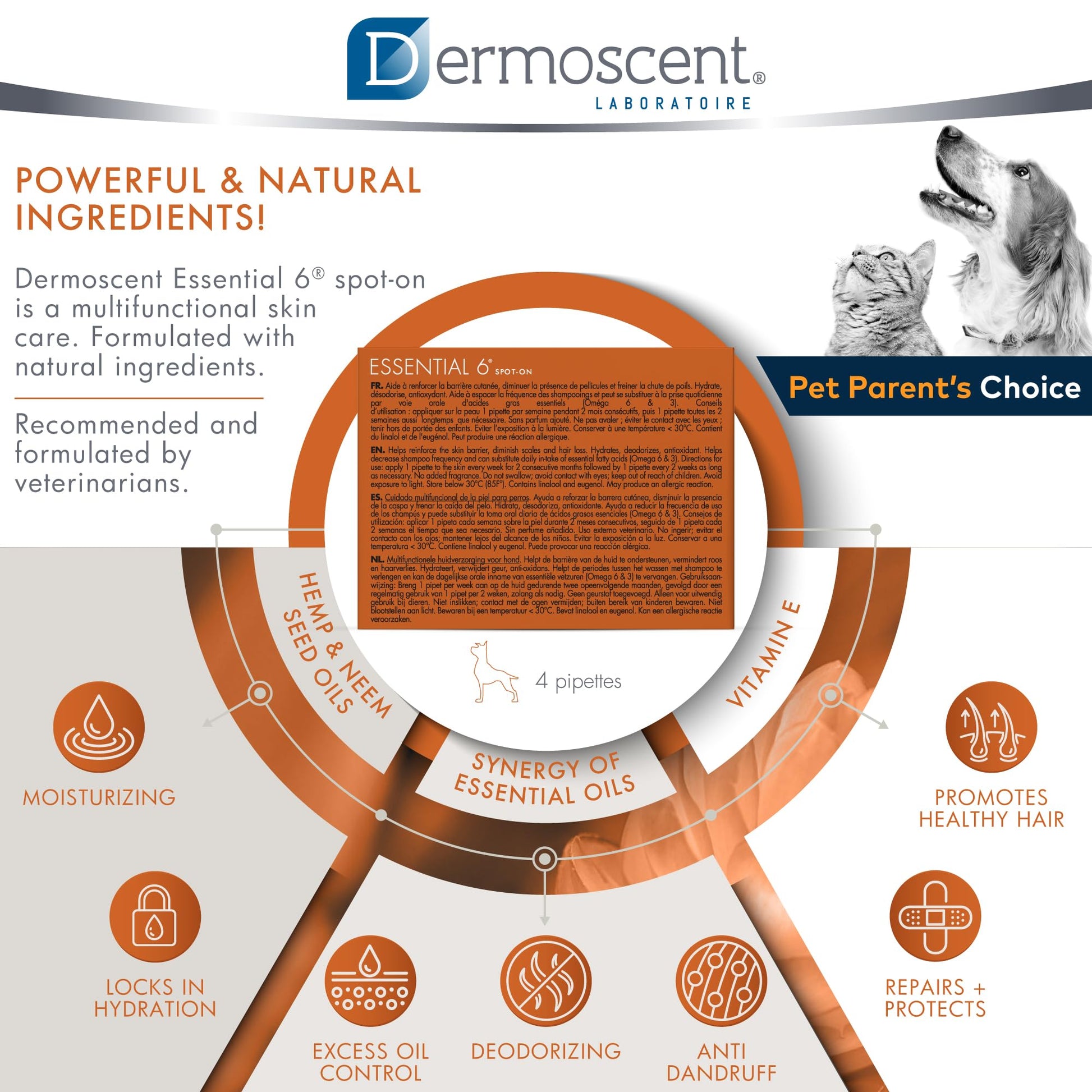 Dermoscent Essential 6 spot-on - Dog Skin Care for Dandruff & Allergy Relief with Vitamin E Oil - Anti Itch for Dogs - Natural Ingredients for Sensitive Skin - Dogs 10-20 kg - 4 Pipettes of 1.2 ml